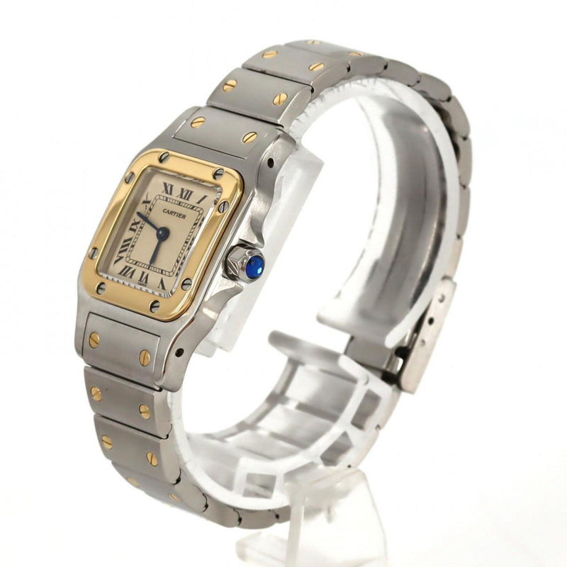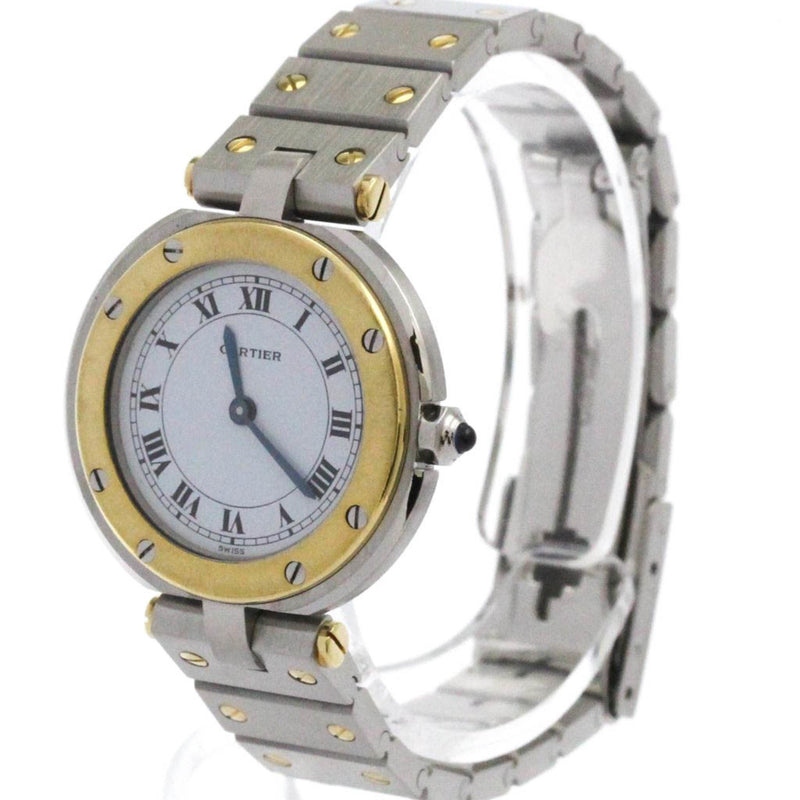 Pre-Owned CARTIER Santos Round 18K Gold Steel Quartz Ladies Watch Polished