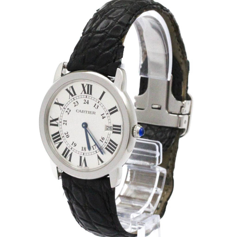 Pre-Owned CARTIER Ronde Solo LM Steel Leather Quartz Mens Watch W6700255 Polished