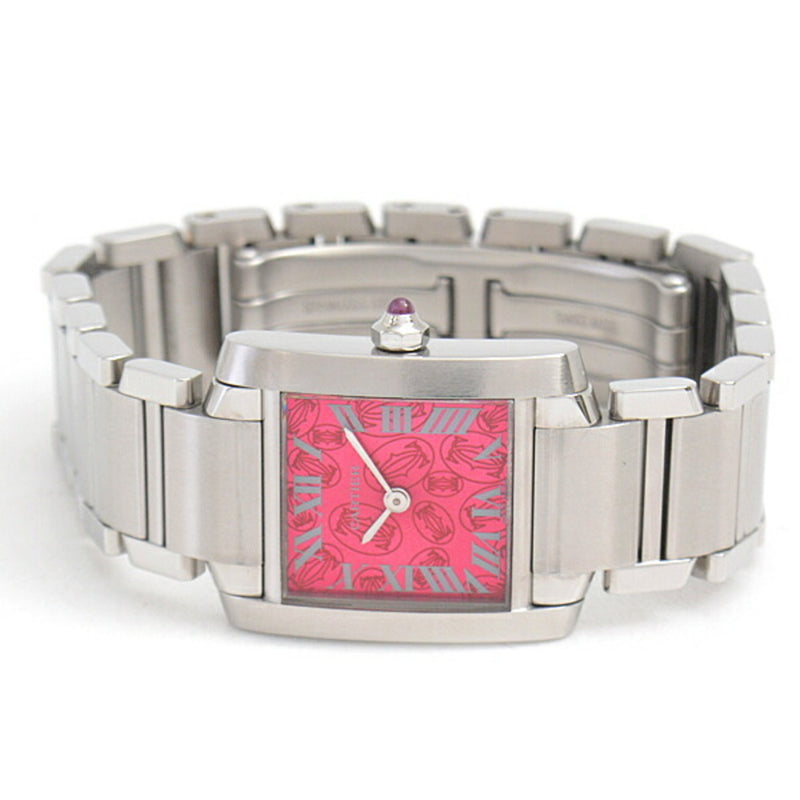 Gebrauchte Cartier Damenuhr Tank Francaise SM 2006 Limited Edition Himbeerrosa Zifferblatt batteriebetrieben Edelstahl SS W51030Q3
