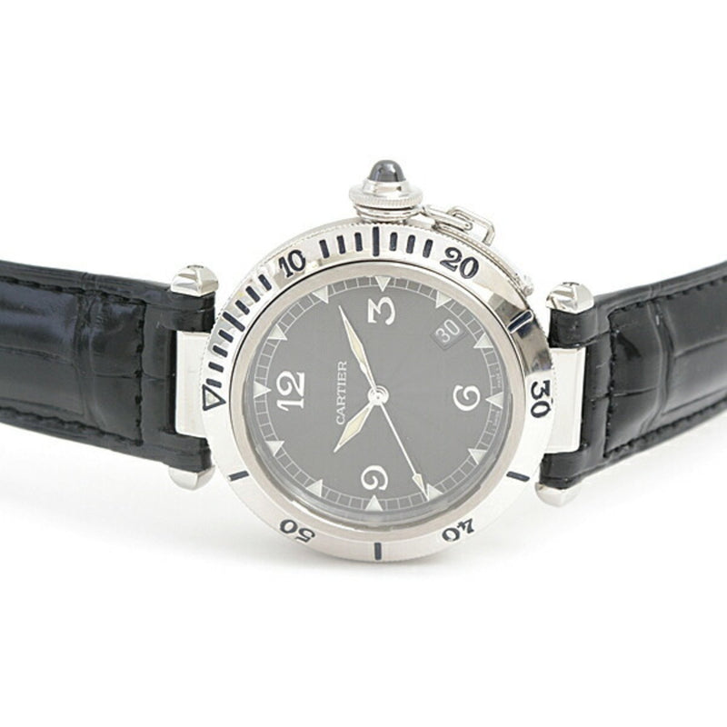 Gebrauchte Cartier Armbanduhr Herren Pasha Grid 38mm Automatik Schwarzes Zifferblatt Edelstahl Platin W3105255