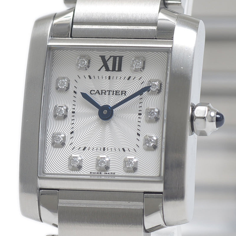 Gebrauchte Cartier Tank Francaise SM Uhr für Damen, silbernes Zifferblatt, 11P Diamanten, WE110006 BP