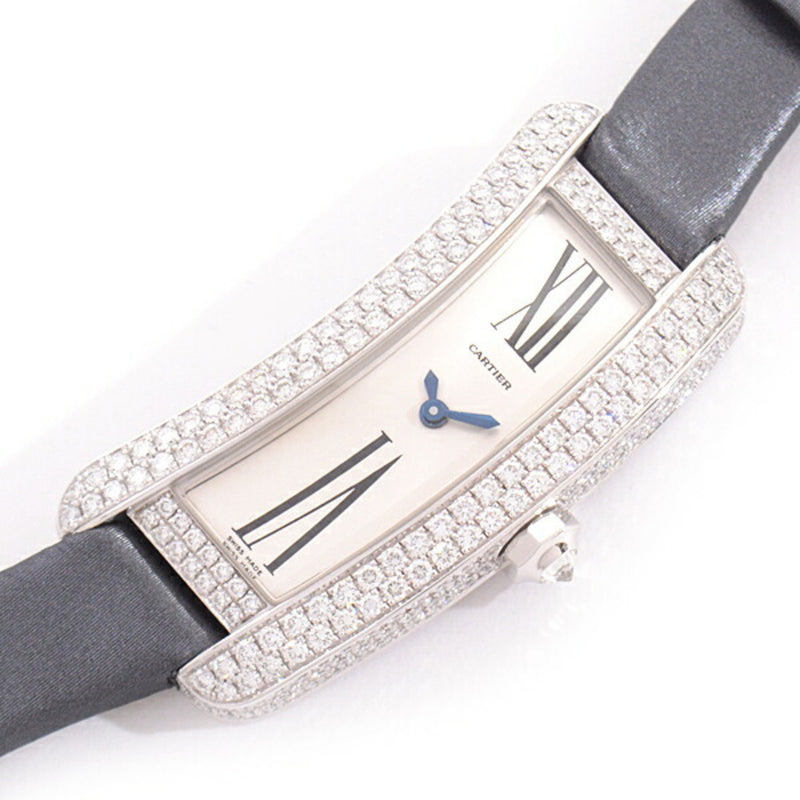 Gebrauchte Cartier Damenuhr Tank Americaine SM Echter Diamant Batteriebetrieben Weißgold 750WG Elfenbein Zifferblatt