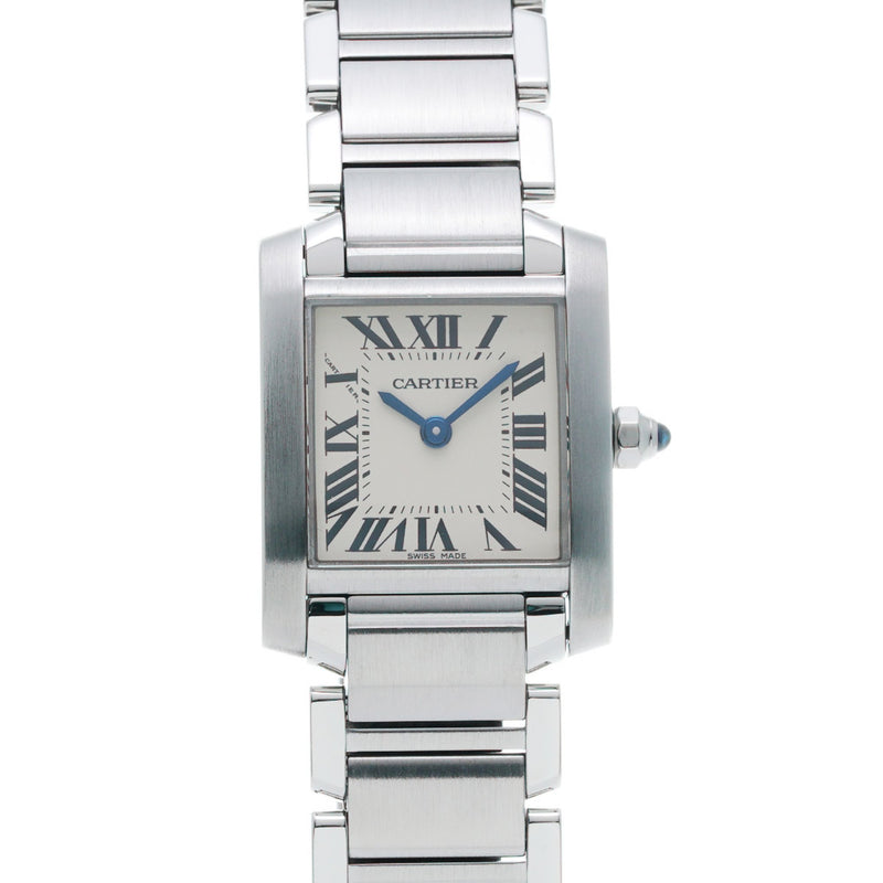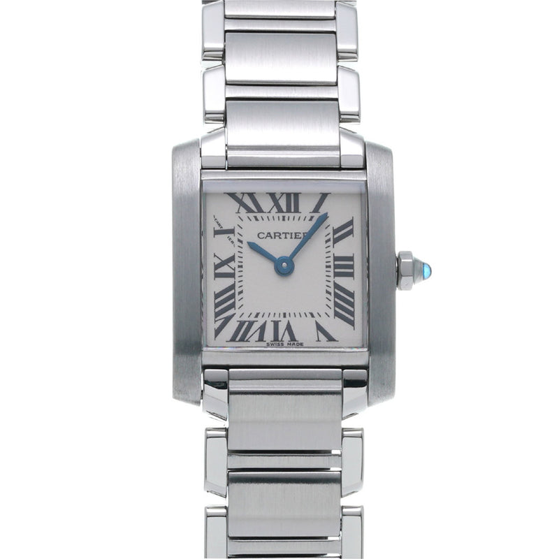 Gebrauchte Cartier Tank Francaise Damenuhr SM Quarz Edelstahl SS W51008Q3 Silber Elfenbein poliert