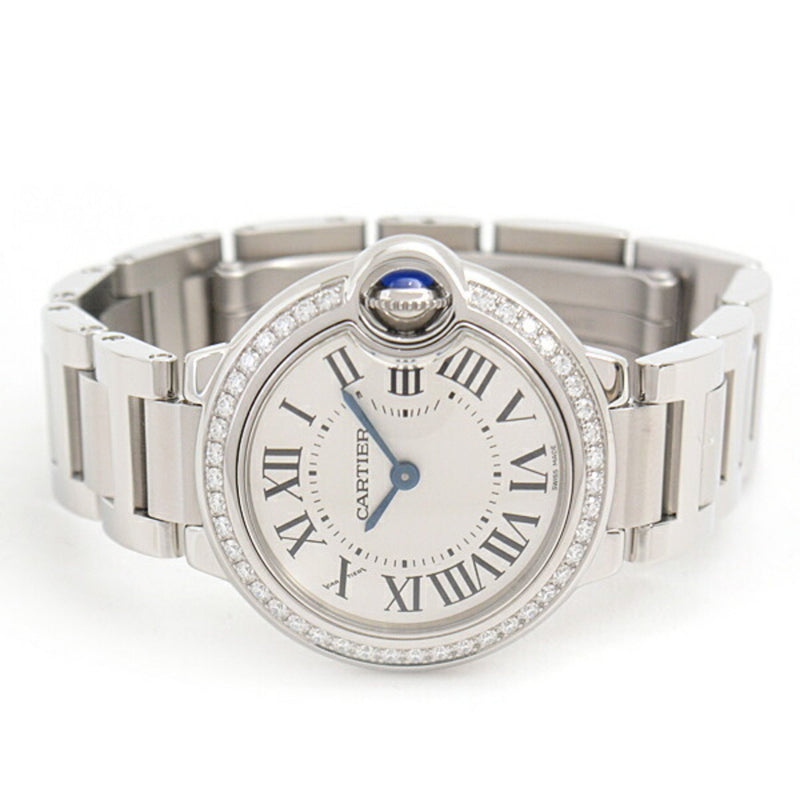 Gebrauchte Cartier Damenuhr Ballon Bleu SM Diamantlünette batteriebetrieben silbernes Zifferblatt Edelstahl SS W4BB0015