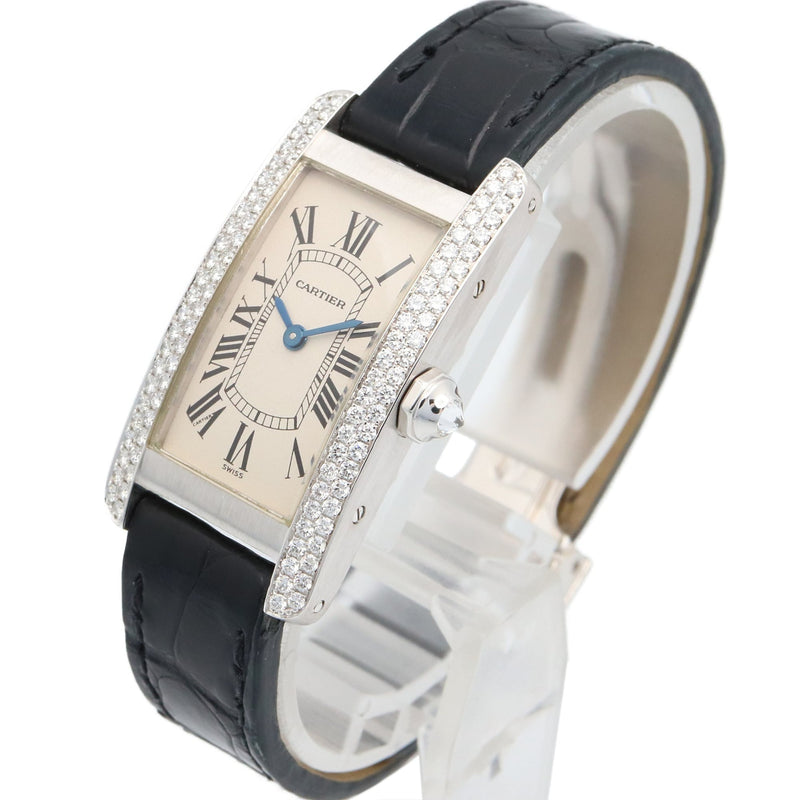 Pre-Owned Cartier Tank Am?ricaine SM Watch with Diamond Bezel, 18K White Gold, Diamonds, Leather Strap, Silver, Women's, WB701851