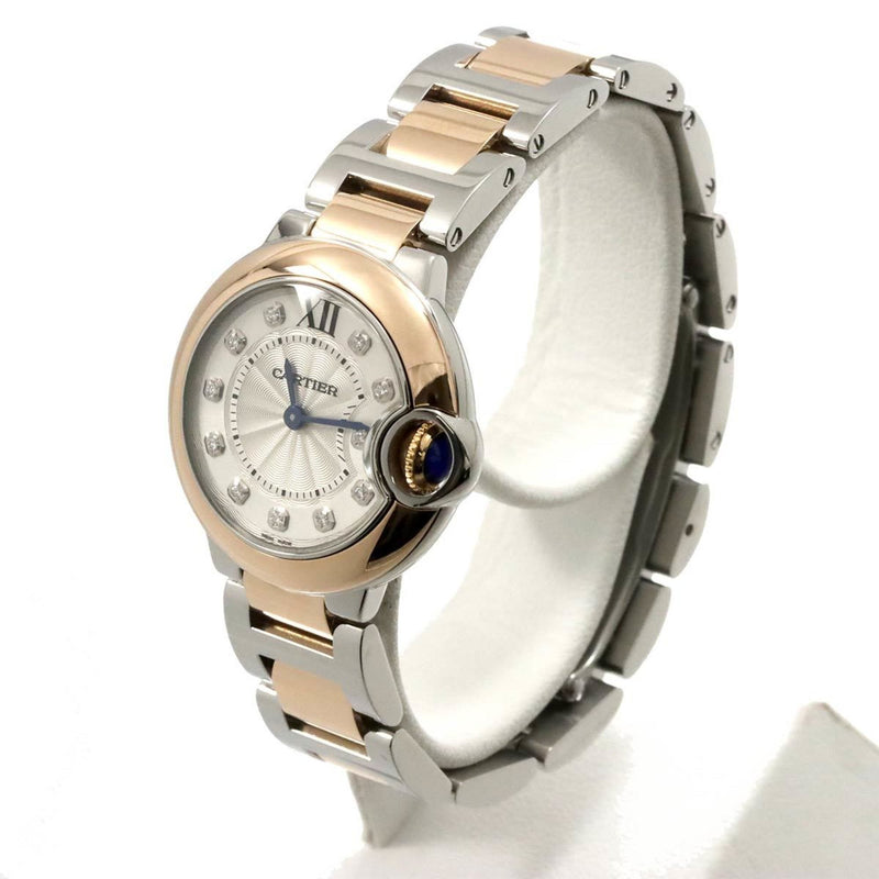 Pre-Owned Cartier Ballon Bleu 28mm Two-tone Women's Watch (W3BB0005) with 11 Diamonds, Silver, 18K Pink Gold, and Quartz Movement
