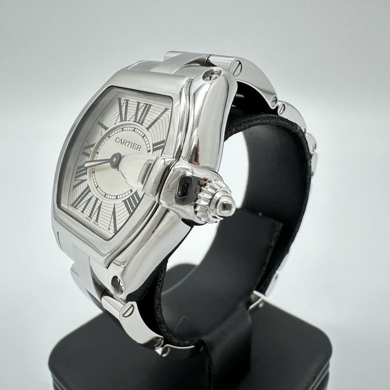 Pre-Owned Polished Cartier Roadster SM W62016V3 Watch, Date, Quartz, Stainless Steel, Silver, for Men and Women