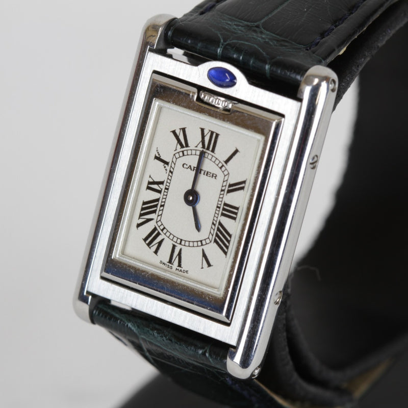 Pre-Owned CARTIER Tank Basculant SM W1011158 Women's Stainless Steel/Leather Watch