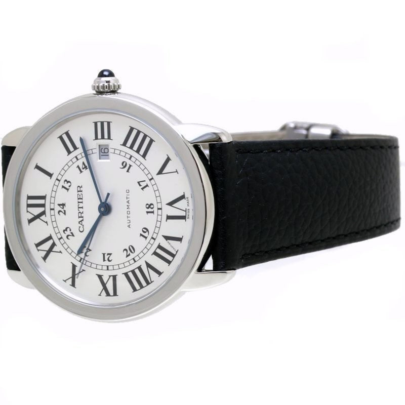 Gebrauchte CARTIER Rondo Solo XL Date WSRN0022 Edelstahl x Leder Herrenuhr 39921