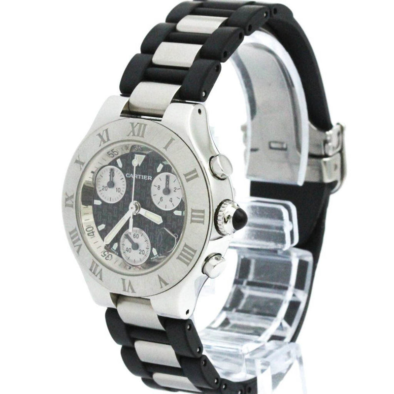 Gebrauchte polierte CARTIER Must 21 Chronoscaph Stahl Quarz Damenuhr W10198U2 BF582827