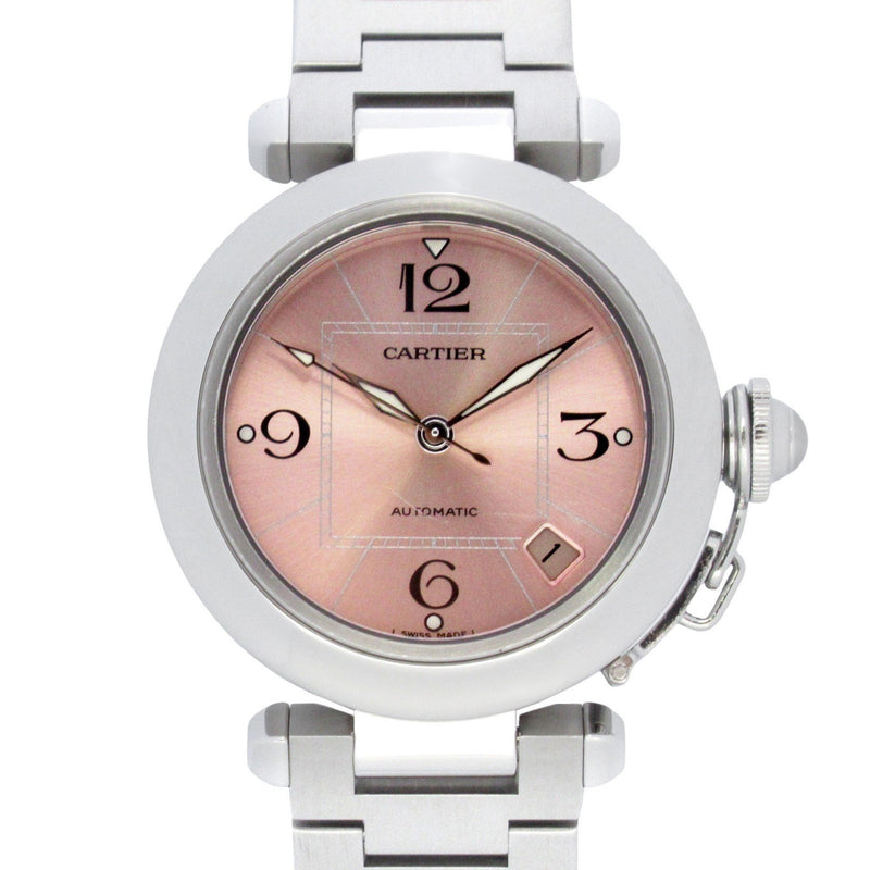 Gebrauchte Cartier Pasha C Big Date Uhr Edelstahl Jungen Pink W31058M7