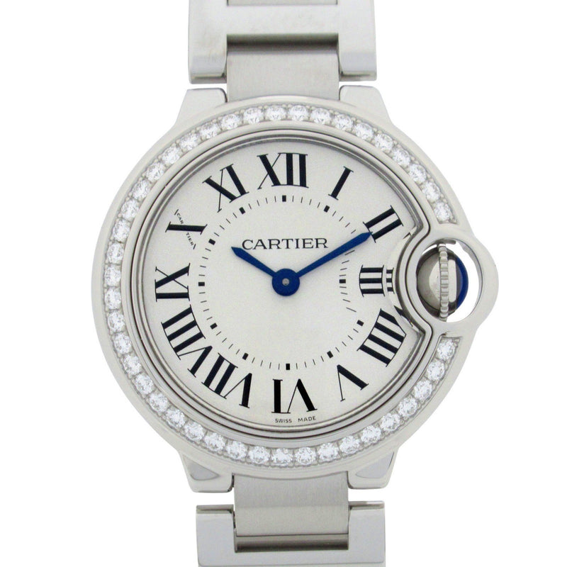 Gebrauchte Cartier Ballon Bleu SM Lünette Diamant Armbanduhr Edelstahl Damen Silber W4BB0015