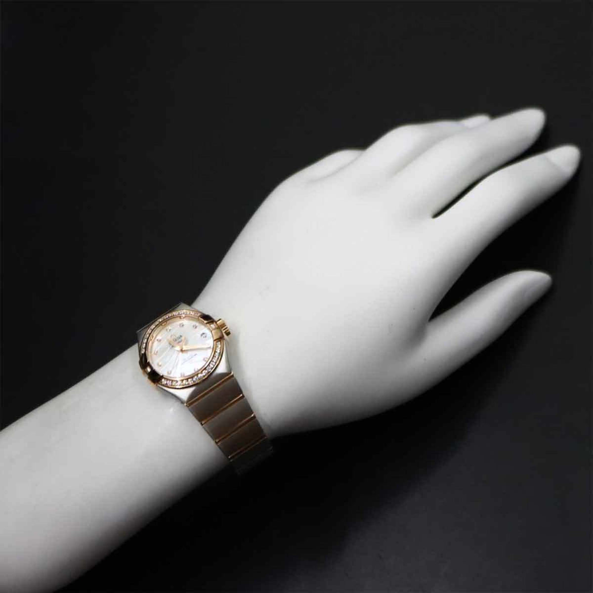 Pre-Owned OMEGA Constellation Co-Axial Two-Tone 123 25 27 20 55 005 Women's Watch with 11 Diamond Bezel, Date Display, White Shell, 18K Gold, Automatic