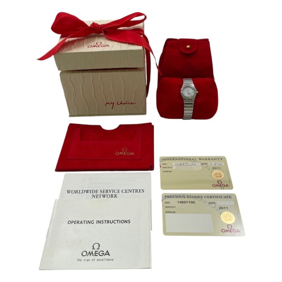 Pre-Owned OMEGA Constellation Mini My Choice 1465.71 Stainless Steel Women's Quartz Watch with Shell Dial and Diamond Bezel