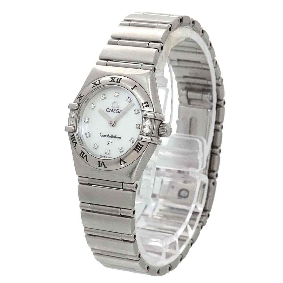 Pre-Owned OMEGA Constellation Mini My Choice 1566 76 4P Diamond Bezel Women's Watch 12P White Shell Quartz