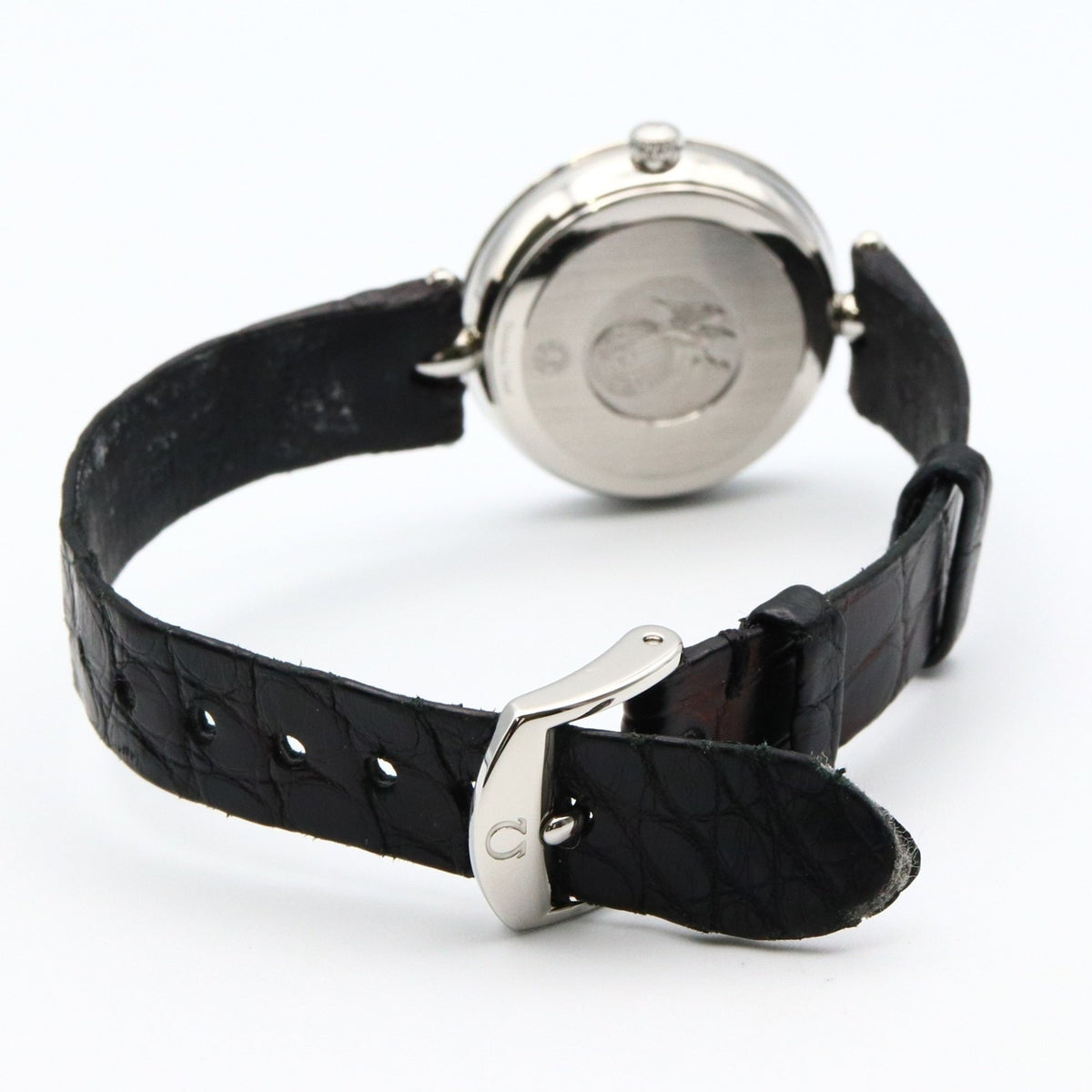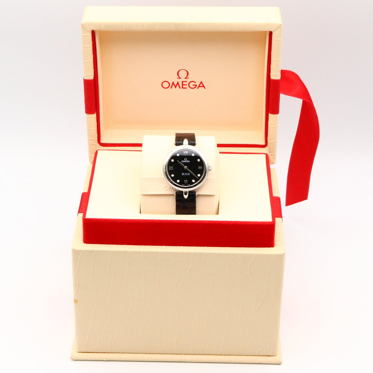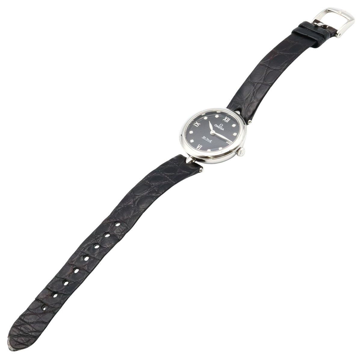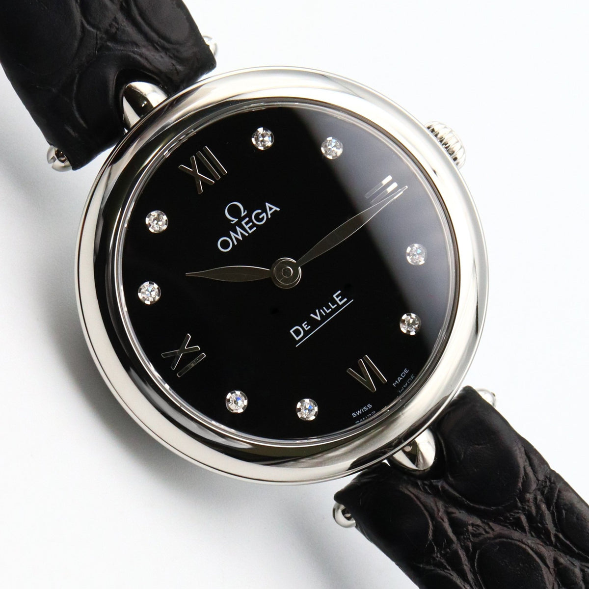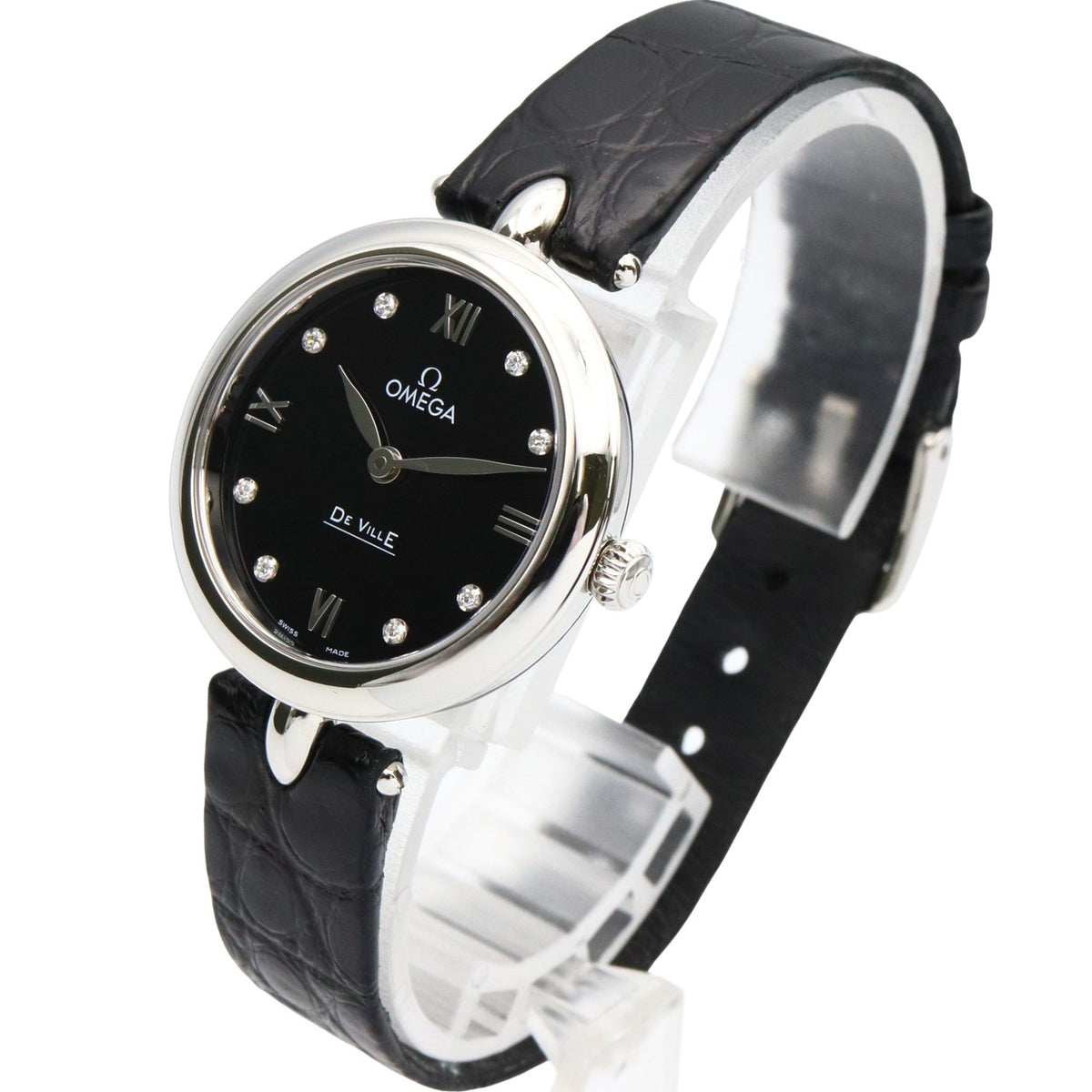 Pre-Owned OMEGA De Ville Prestige Watch, Diamond, Stainless Steel, Leather, Women's, Black, 424.13.27.60.51.001