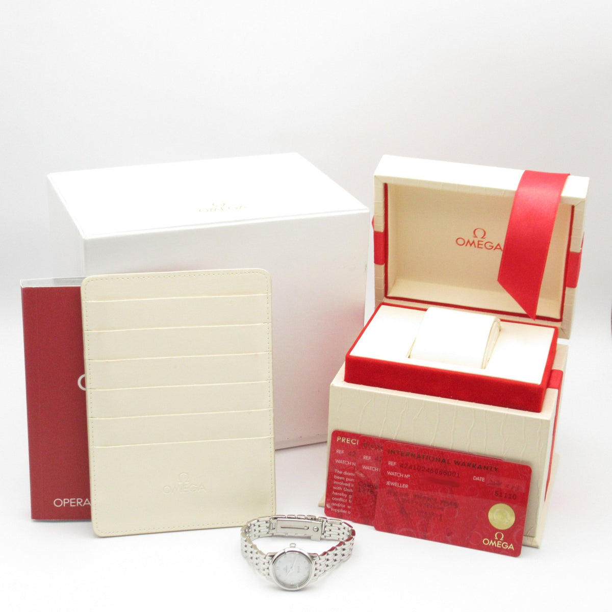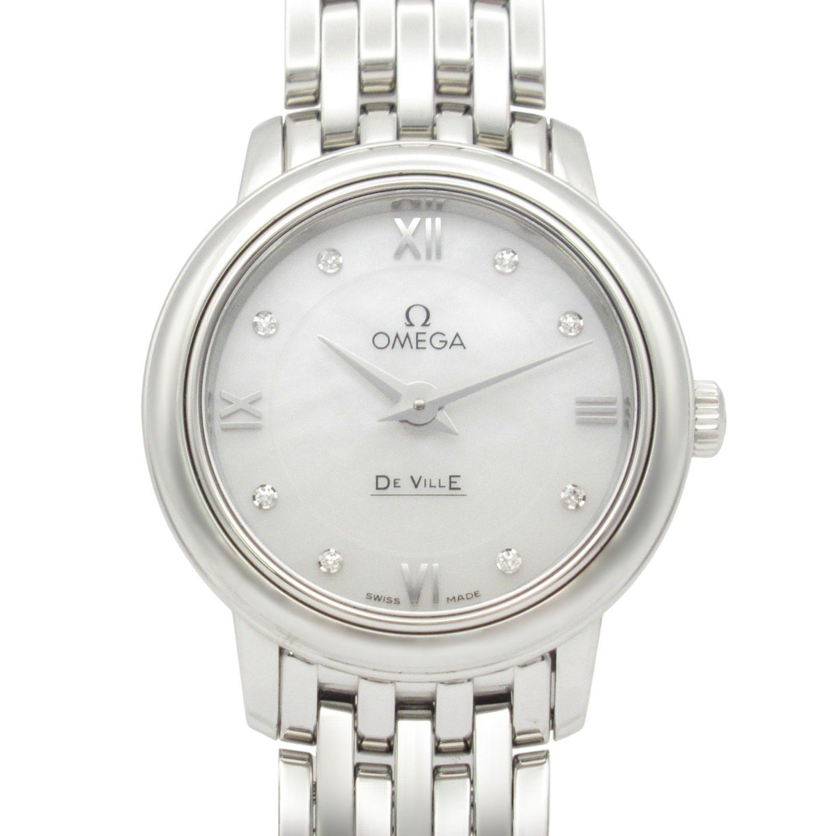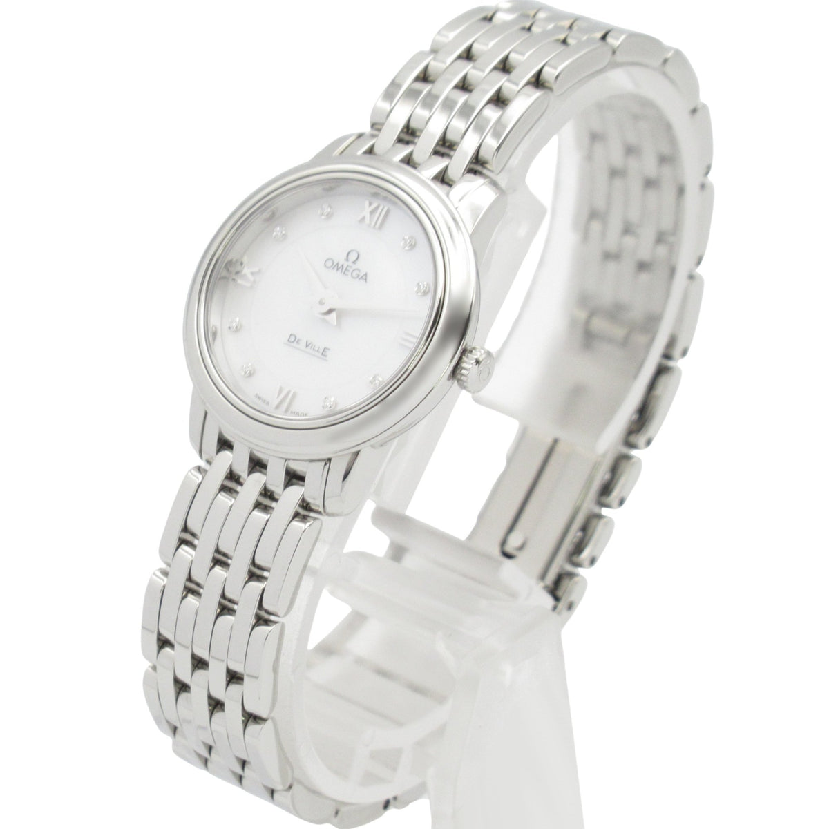 Gebrauchte OMEGA De Ville Prestige Damenuhr aus Edelstahl mit weißem Gehäuse 424.10.24.60.55.001