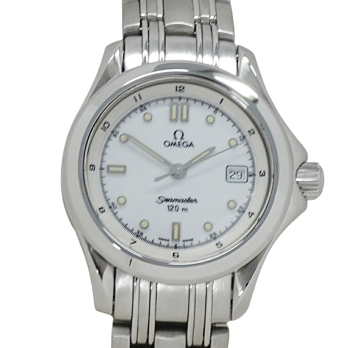 Gebrauchte OMEGA Seamaster 2581.20 Uhr Damen 120m Datum Quarz Edelstahl SS Silber Weiß Poliert
