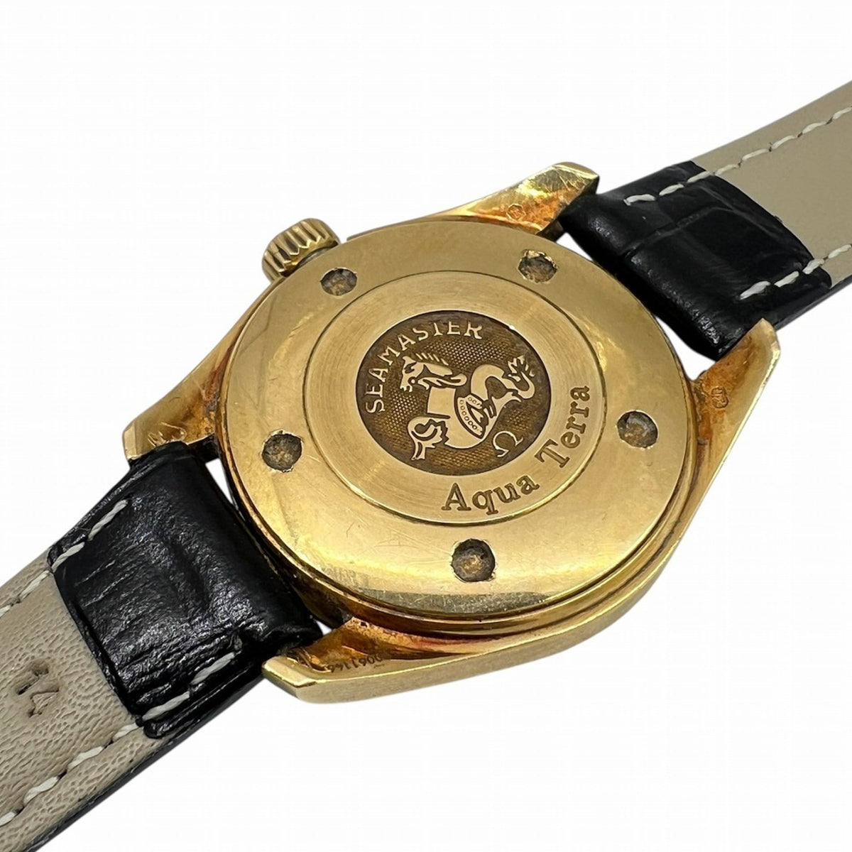 Pre-Owned OMEGA Seamaster Aqua Terra 150m K18YG Black Dial Quartz Watch 2677.50.32 Leather Strap for Men and Women