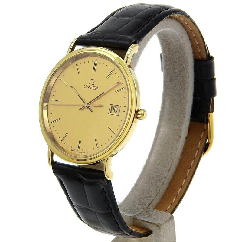 Gebrauchte OMEGA Armbanduhr Kal. 1430 K18 Gelbgold x geprägtes Leder Quarz Analoganzeige Zifferblatt Herren
