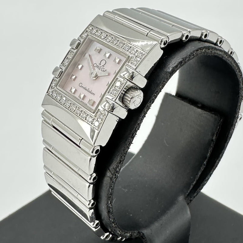 Pre-Owned OMEGA Constellation Cale Quadra Diamond Quartz Stainless Steel Pink Shell Women's Watch 1537.73