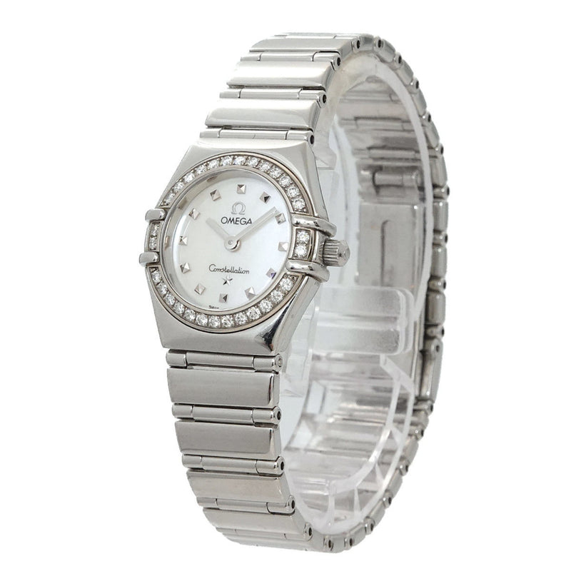 Pre-Owned OMEGA Constellation Mini My Choice 1566 76 4P Diamond Bezel Women's Watch 12P White Shell Quartz