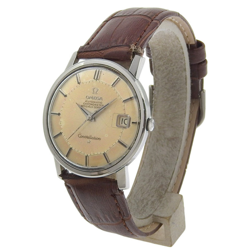 Gebrauchte OMEGA Constellation Herrenuhr 168.005 Edelstahl mit geprägtem Lederarmband, Automatik, Analoganzeige, beiges Zifferblatt, B-Rang