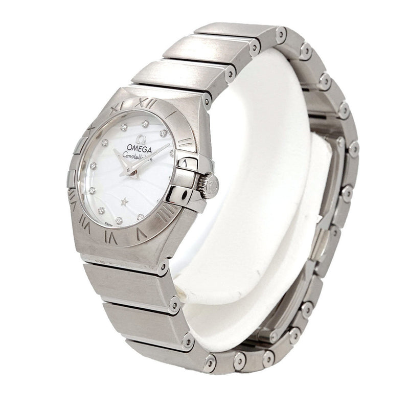 Gebrauchte OMEGA Constellation Plume 123 10 24 60 55 003 Damenuhr Weißes Gehäuse 12P Diamant Quarz