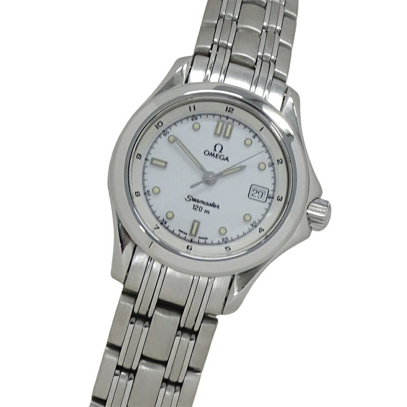Gebrauchte OMEGA Seamaster 2581.20 Uhr Damen 120m Datum Quarz Edelstahl SS Silber Weiß Poliert