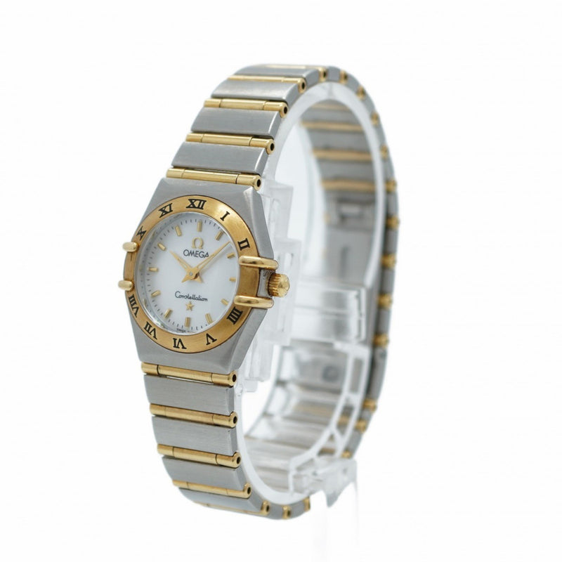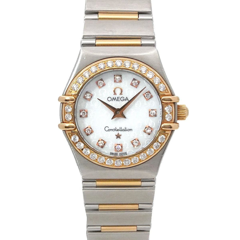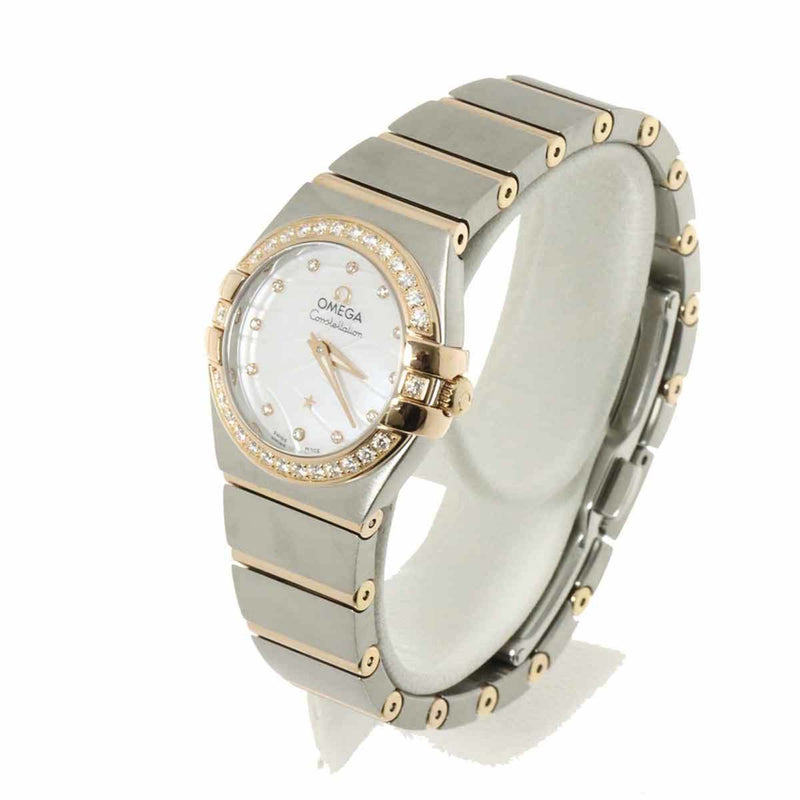 Gebrauchte OMEGA Constellation Brushed Two-tone 123 25 24 60 55 012 Damenuhr Diamantlünette 12P Weißes Gehäuse K18PG Quarz