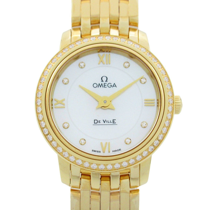 Gebrauchte OMEGA De Ville Prestige Diamant-Lünette Uhr 18 Karat Gelbgold Damen weiße Schale 424.55.24.60.55.001