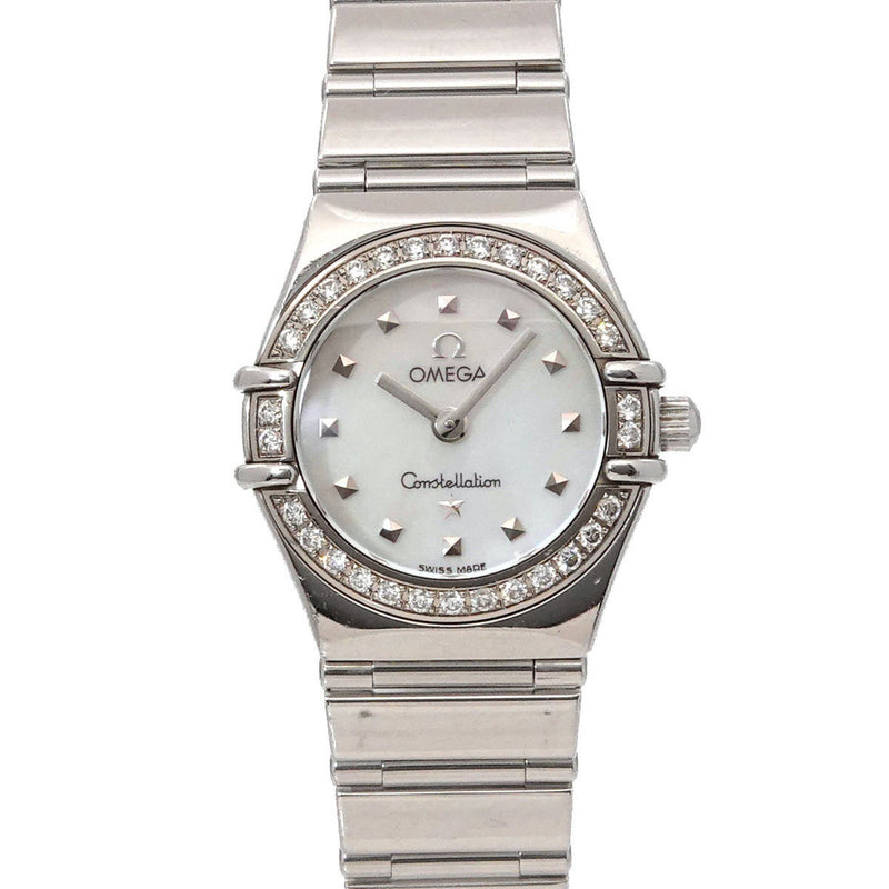 Gebrauchte OMEGA Constellation Mini My Choice 1465 71 Diamantlünette Damenuhr Weißes Muschelquarz