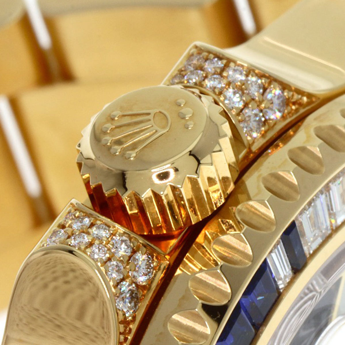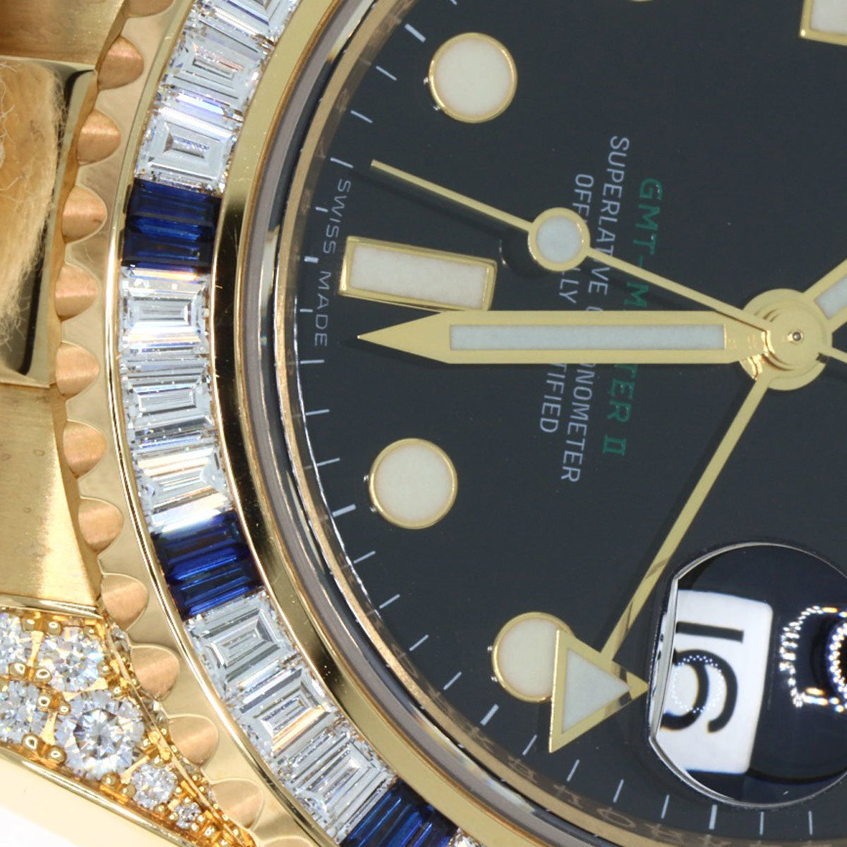 Pre-Owned Rolex 116758SA GMT-Master II Baguette Diamond and Sapphire Watch in 18K Yellow Gold (18KYG) Men's