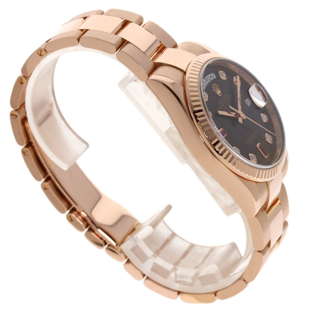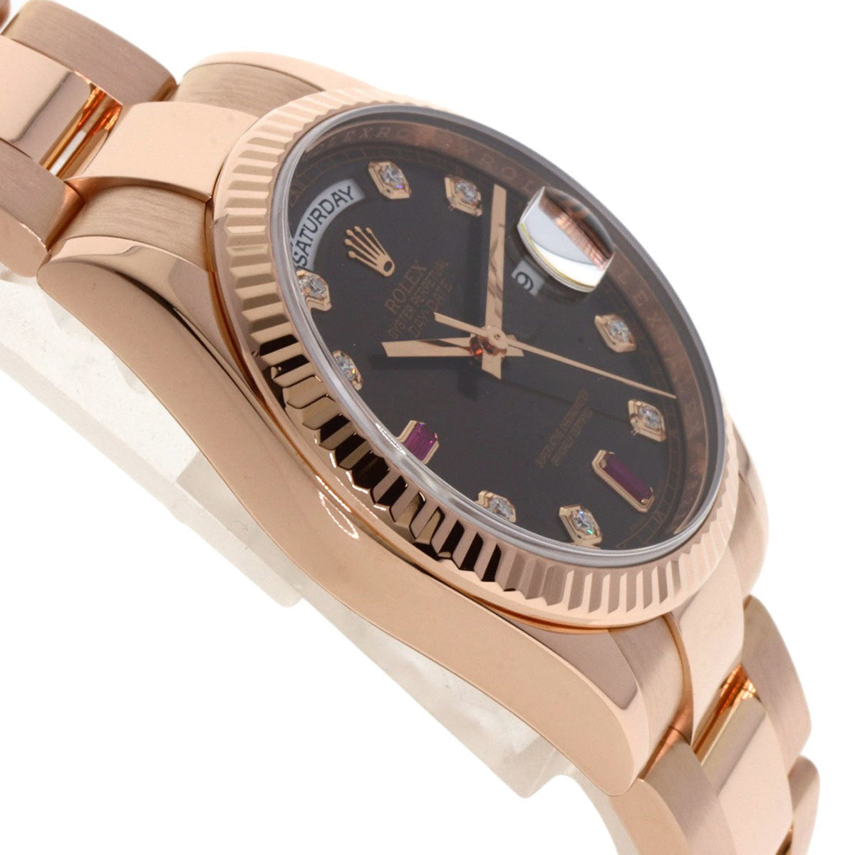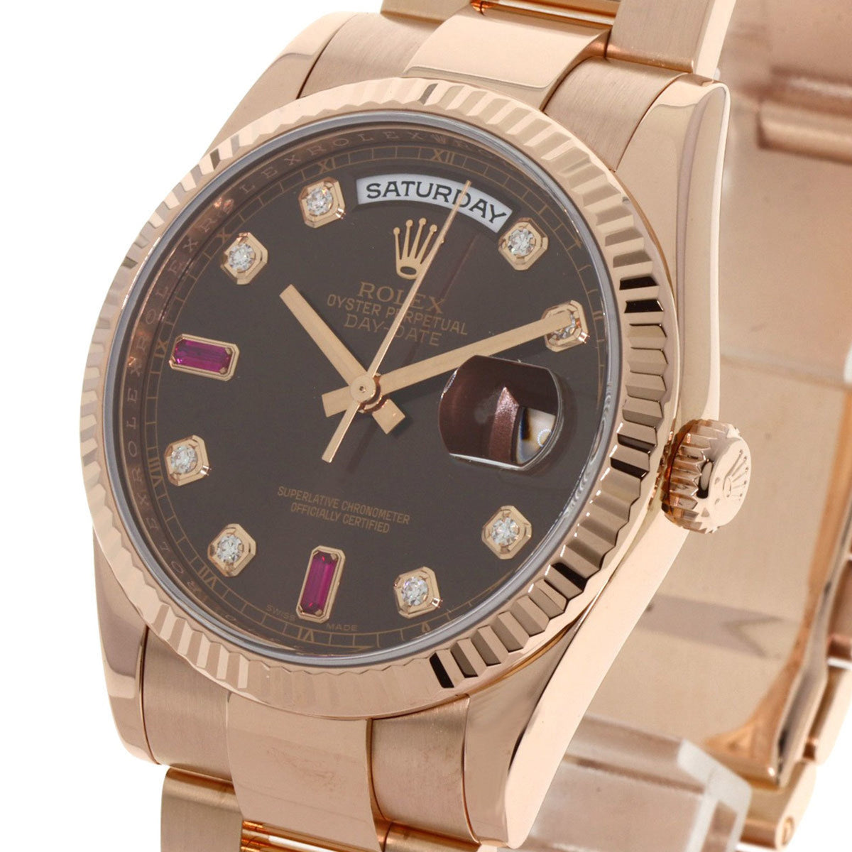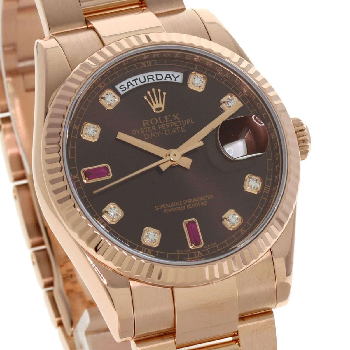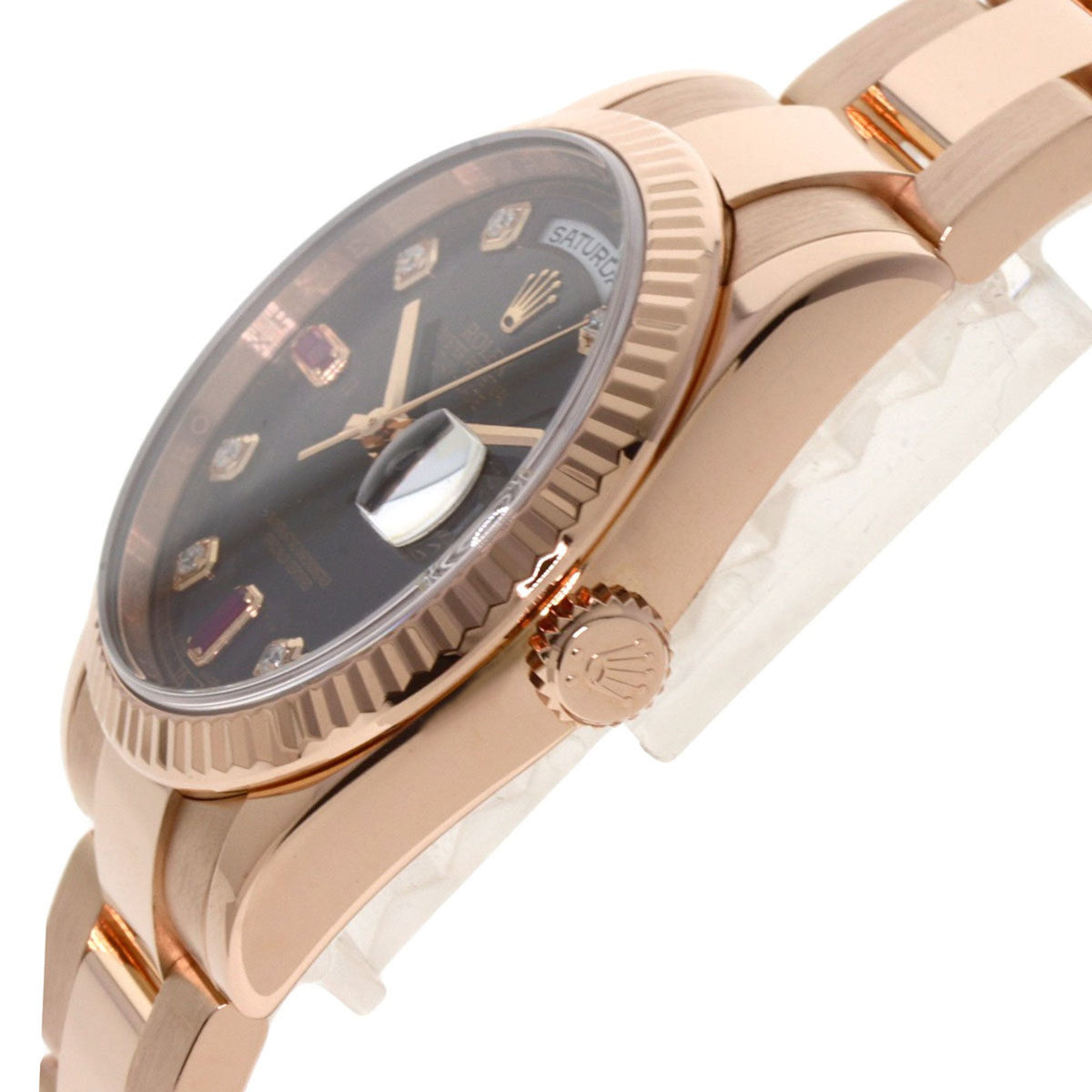 Pre-Owned Rolex 118235F Day-Date Ruby and Diamond Watch in 18K Pink Gold/Everose Gold for Men