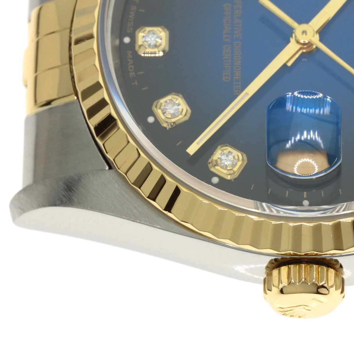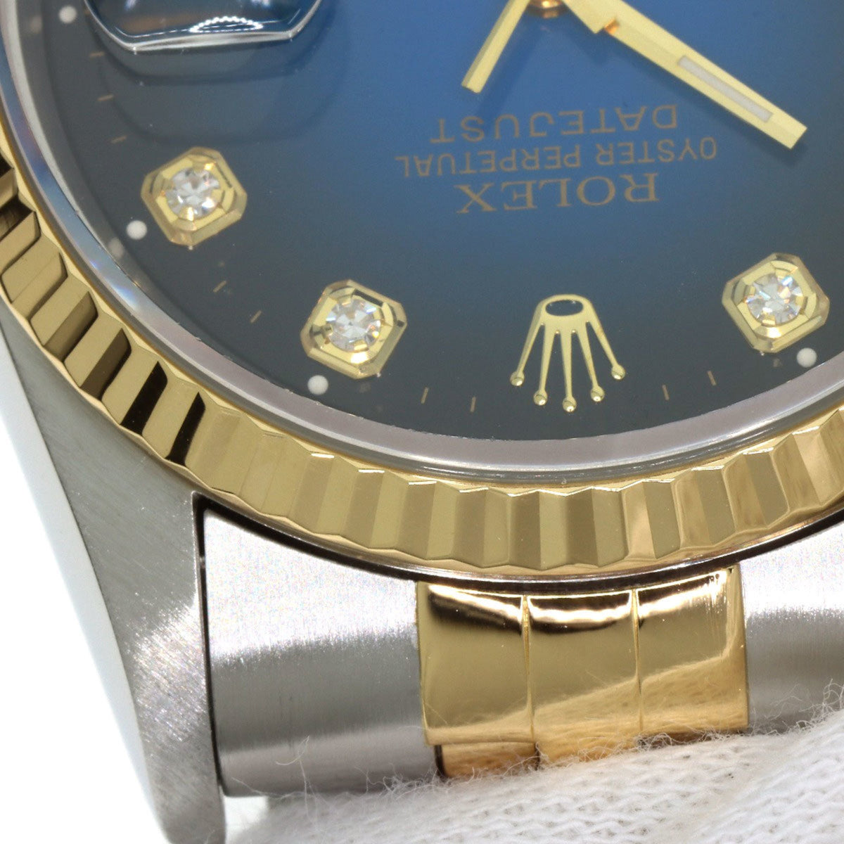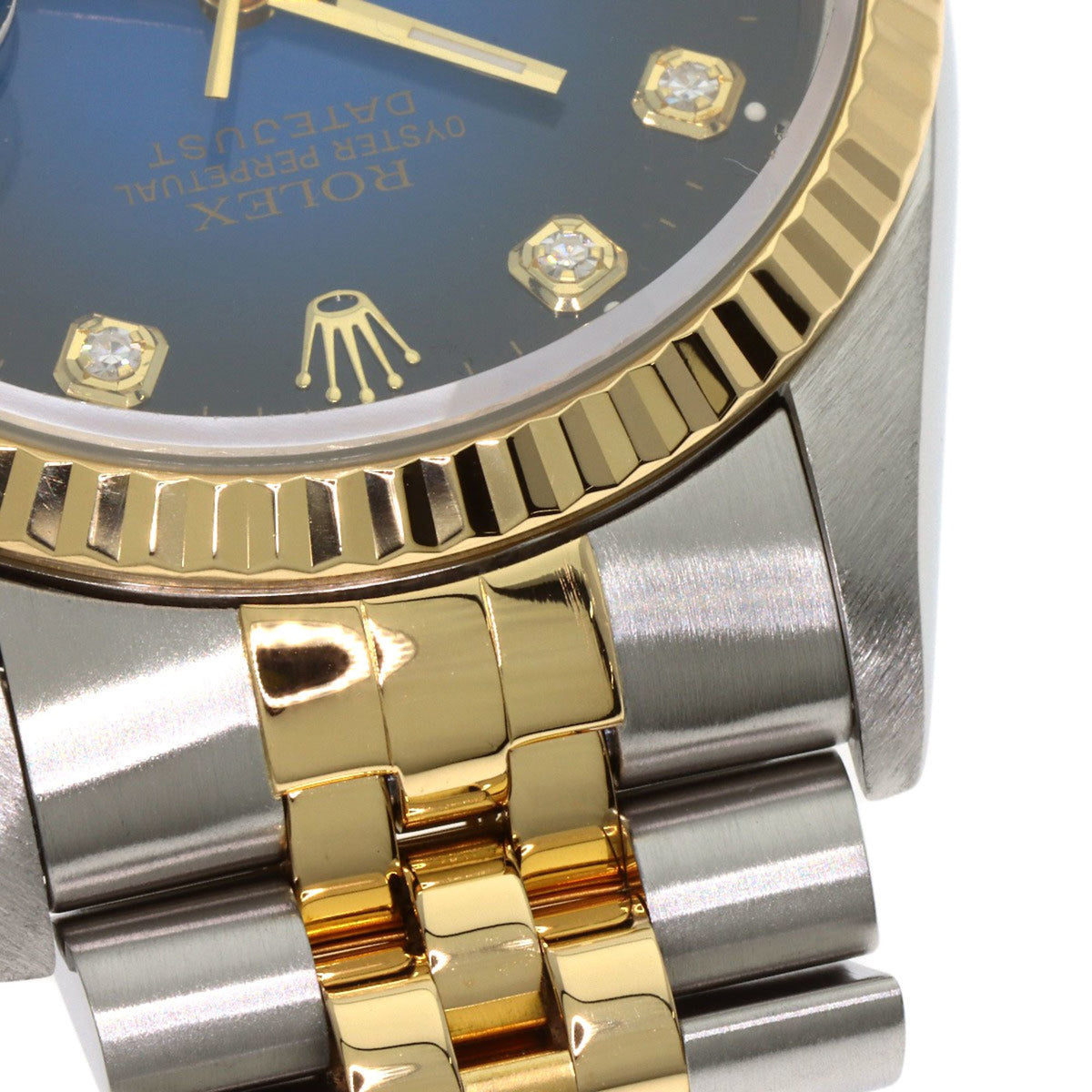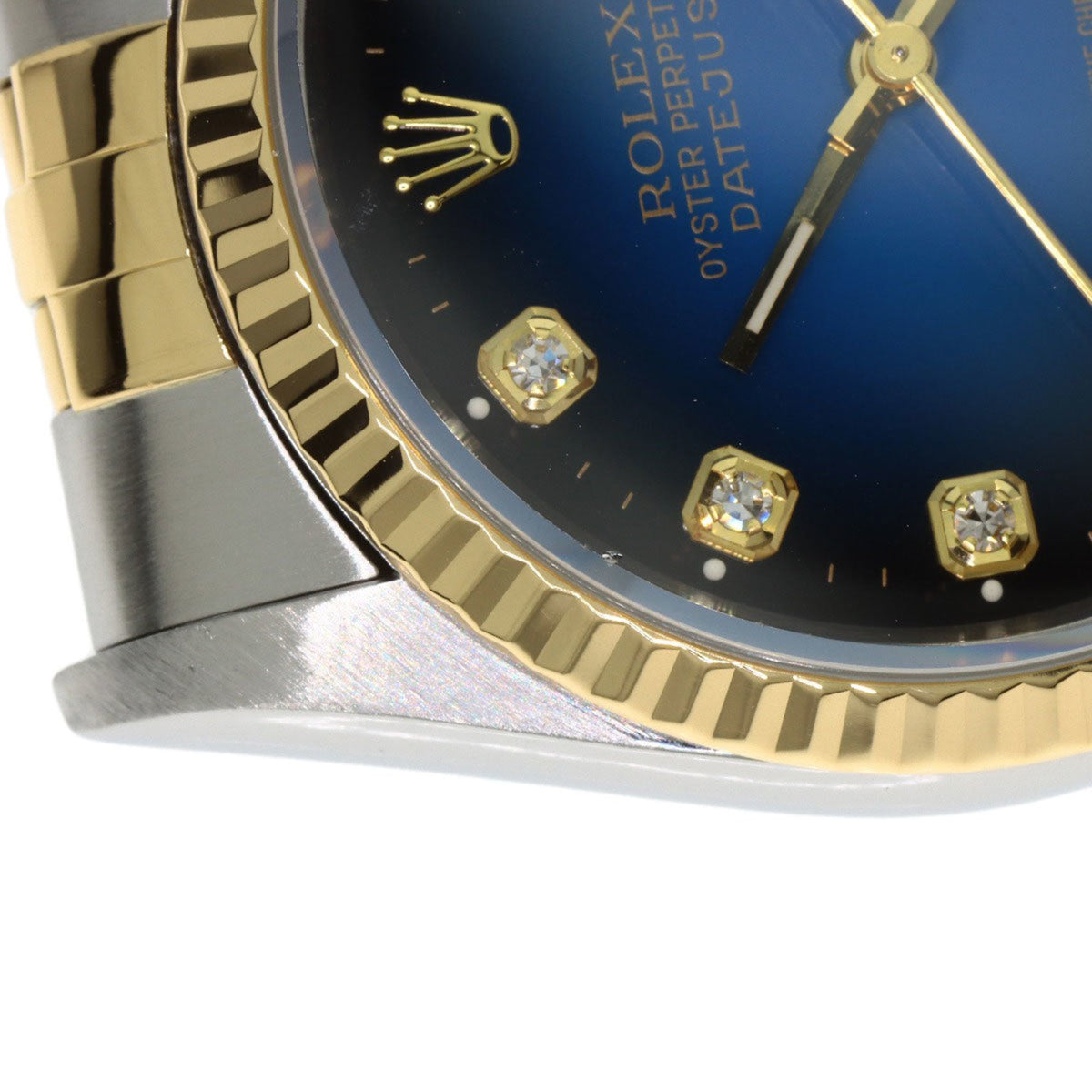 Pre-Owned Rolex 16233G Datejust 10P Diamond Blue Gradient Stainless Steel Watch, SSx18KYG, 18KYG, Men's