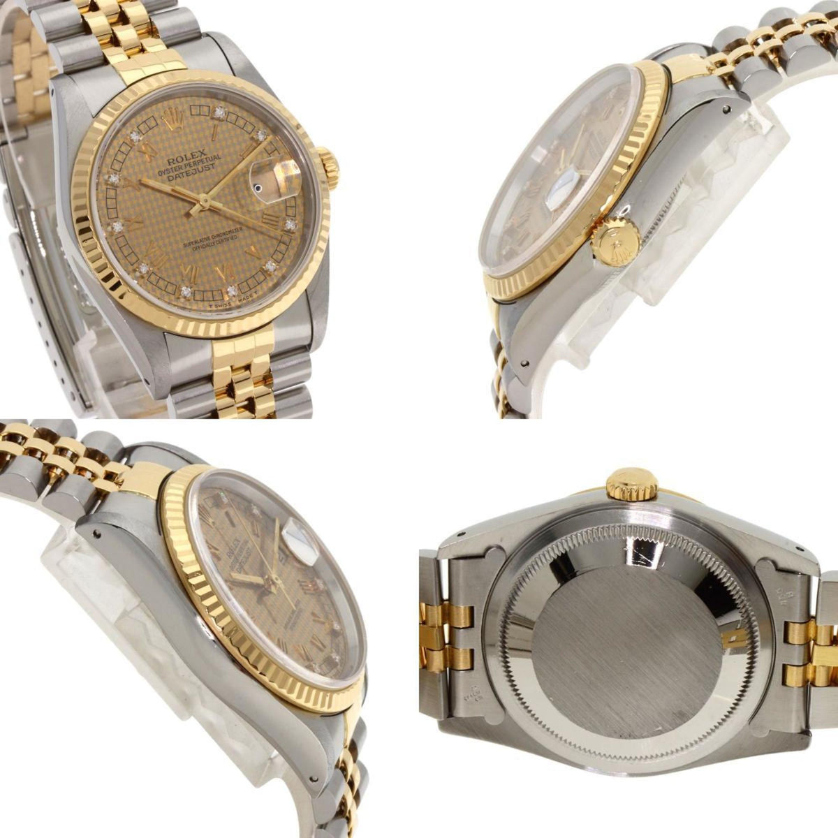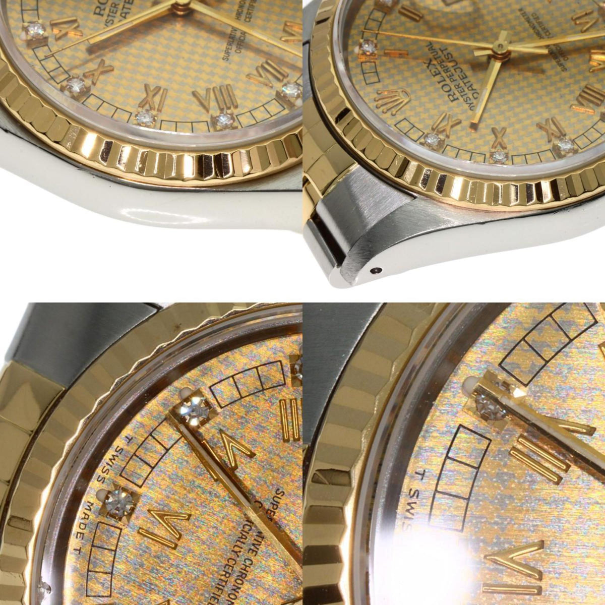 Gebrauchte Rolex 16233G Datejust 10P Diamant Champagner Hahnentritt Uhr Edelstahl SSxK18YG Herren ROLEX