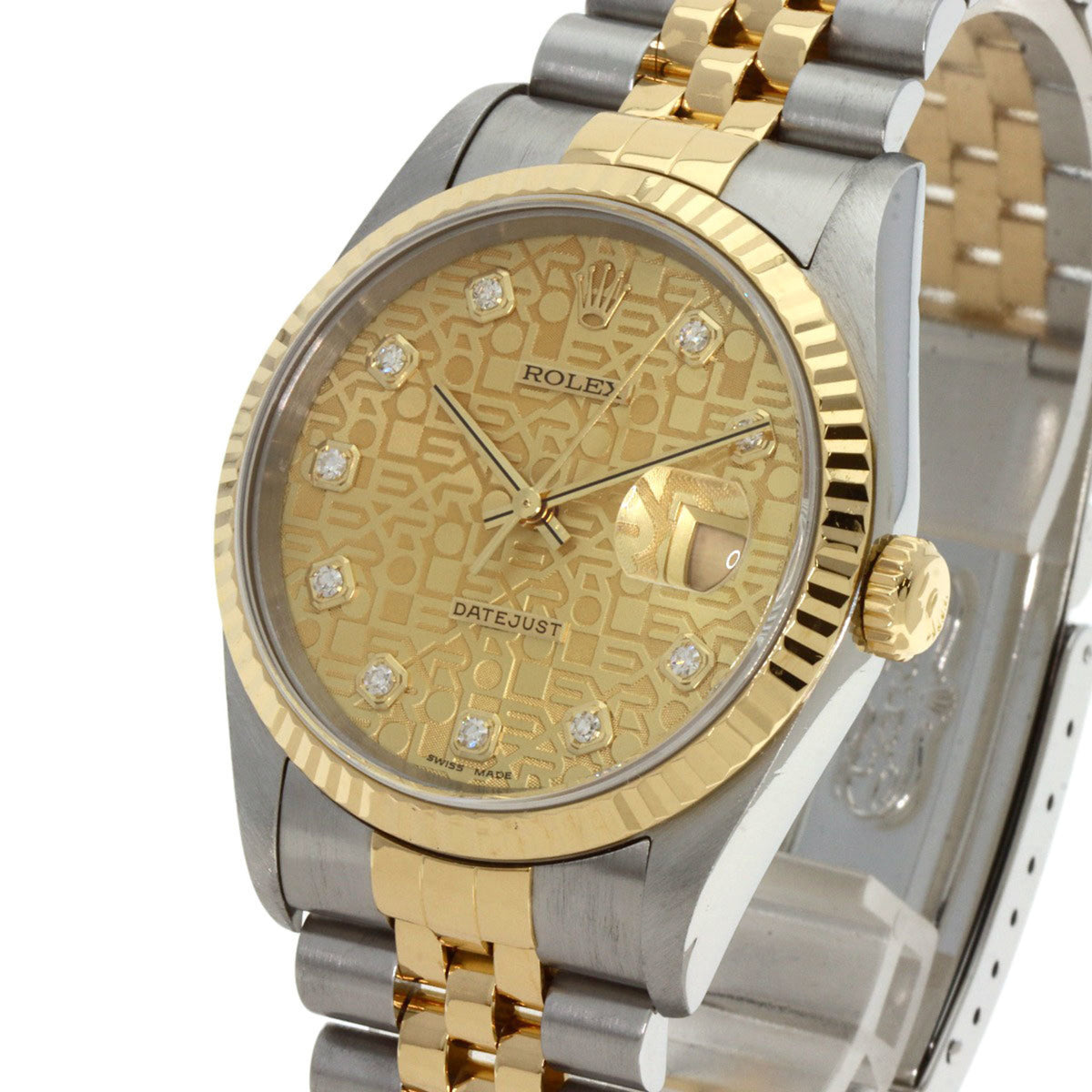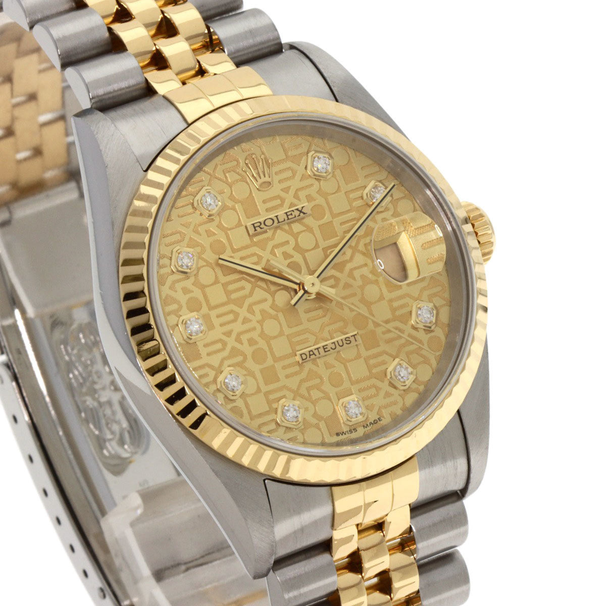 Gebrauchte Rolex 16233G Datejust 10P Diamantuhr Edelstahl SSxK18YG Herren ROLEX