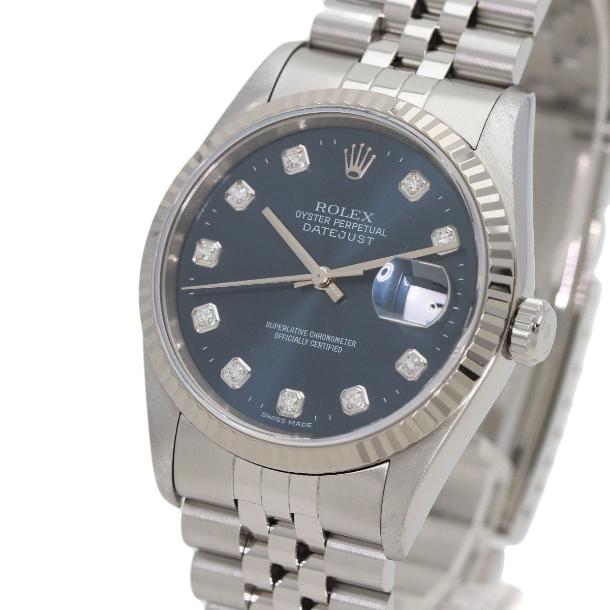 Gebrauchte Rolex 16234G Datejust 10P Diamant Uhr Edelstahl SS K18WG Herren ROLEX