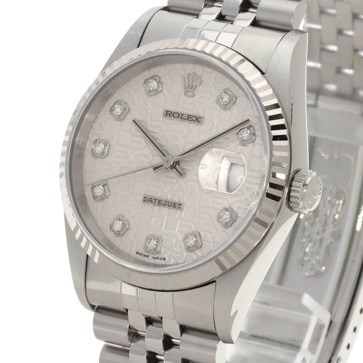 Gebrauchte Rolex 16234G Datejust 10P Diamant Uhr Edelstahl SS K18WG Herren ROLEX