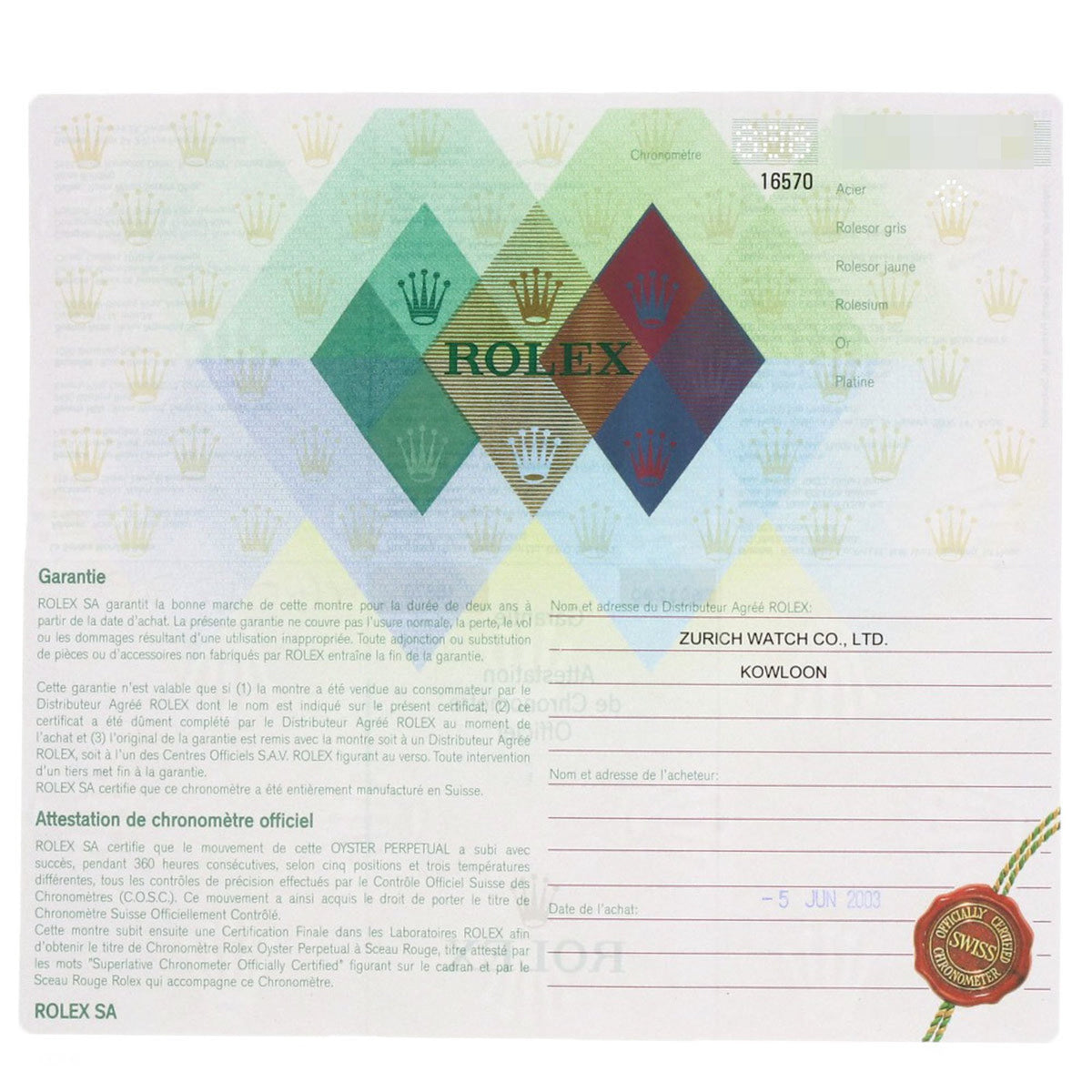- Accessories: Certificate
