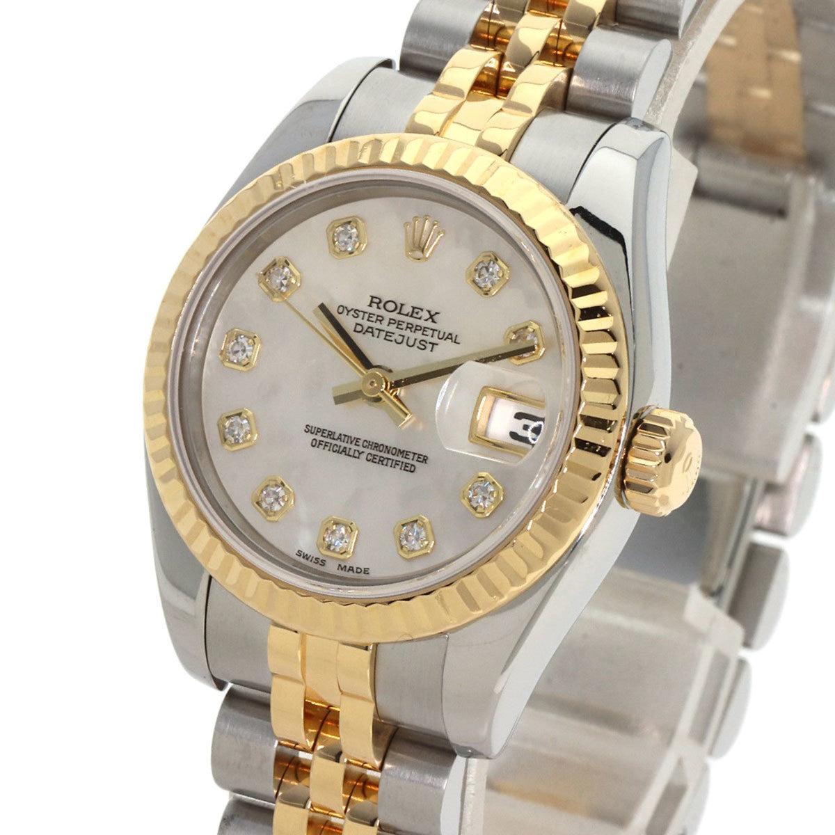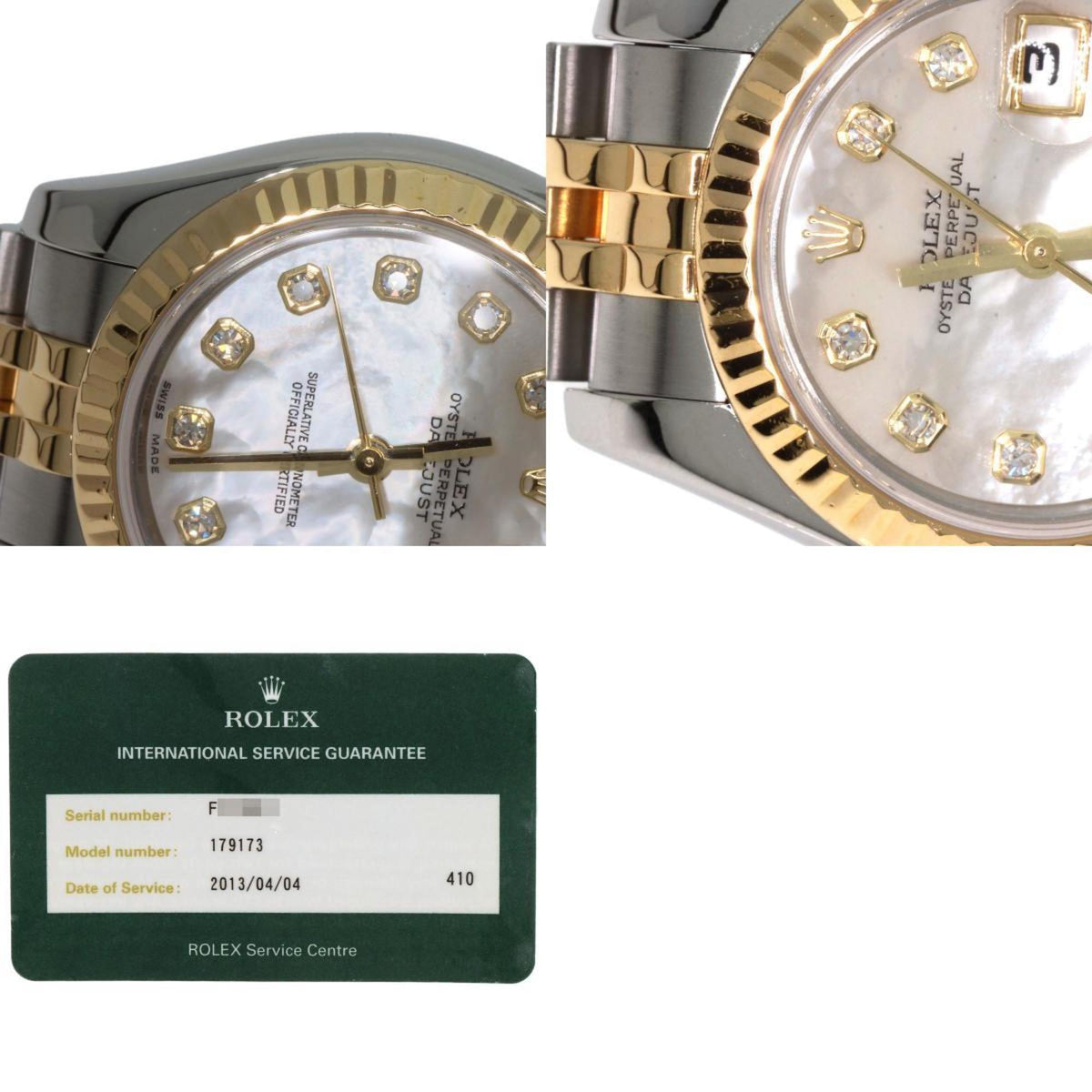 Gebrauchte Rolex 179173NG Datejust 10P Diamant Uhr Edelstahl SSxK18YG Damen