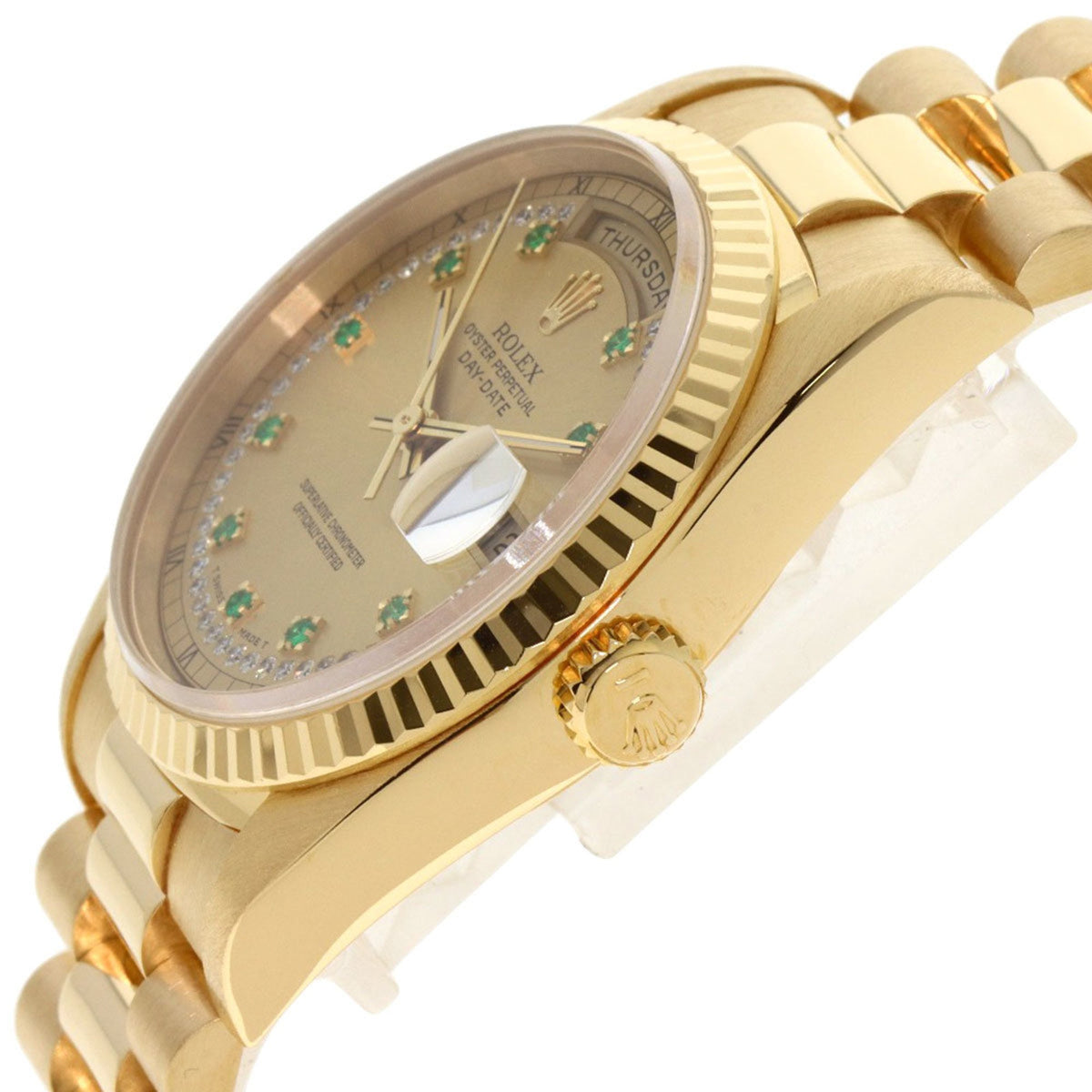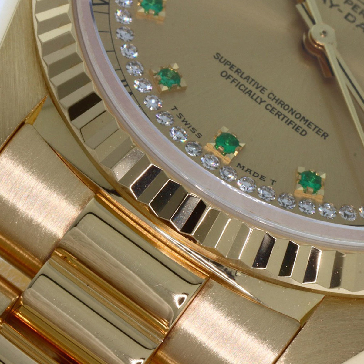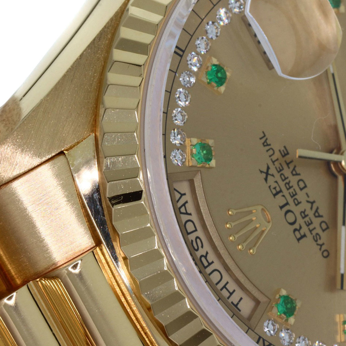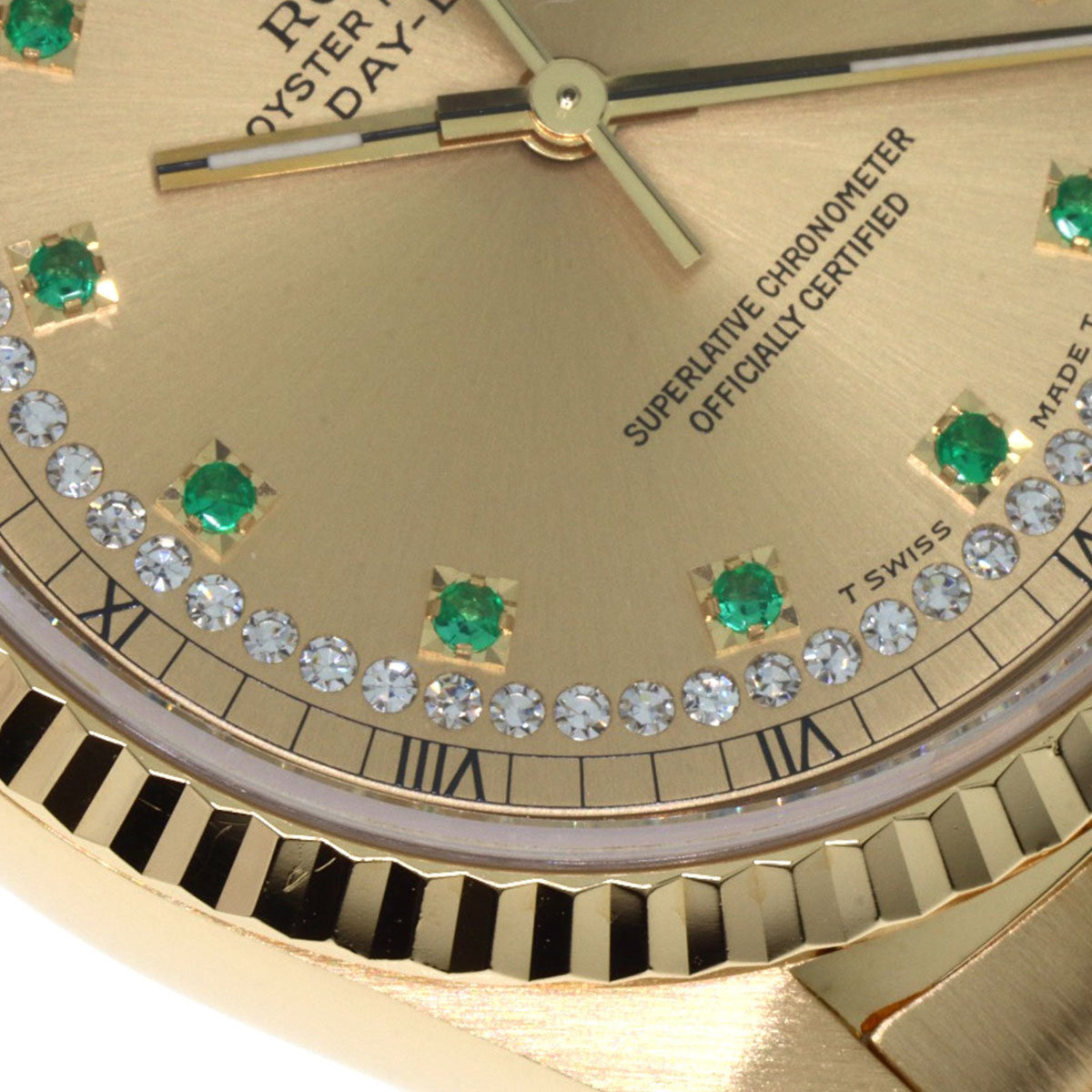 Pre-Owned Rolex 18238LE Day-Date Emerald and Diamond Watch in 18K Yellow Gold (18KYG) Men's