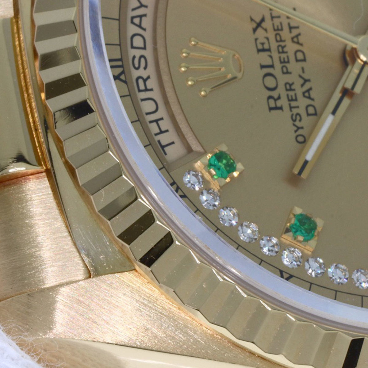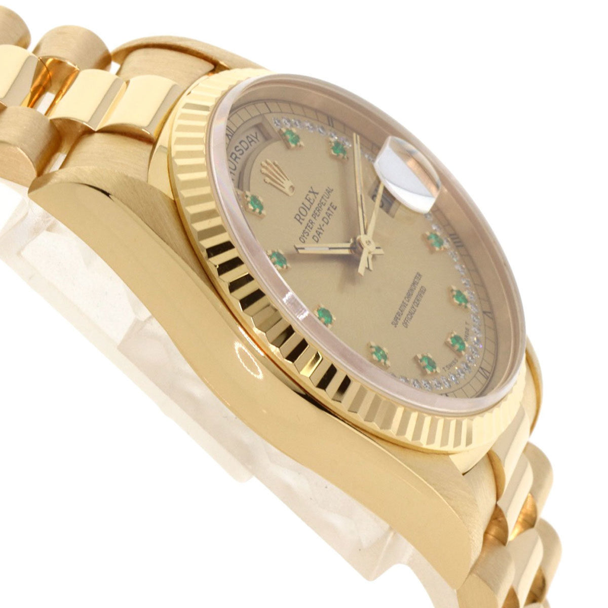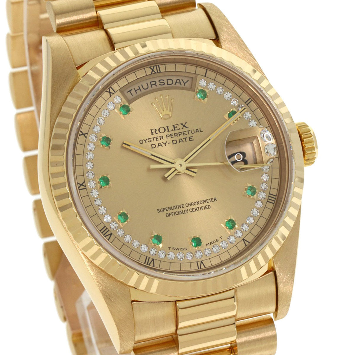 Pre-Owned Rolex 18238LE Day-Date Emerald and Diamond Watch in 18K Yellow Gold (18KYG) Men's