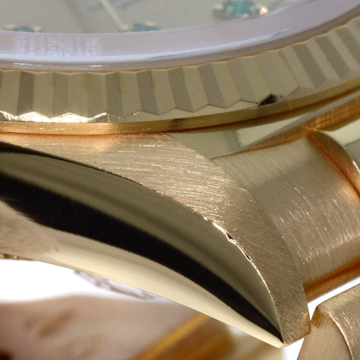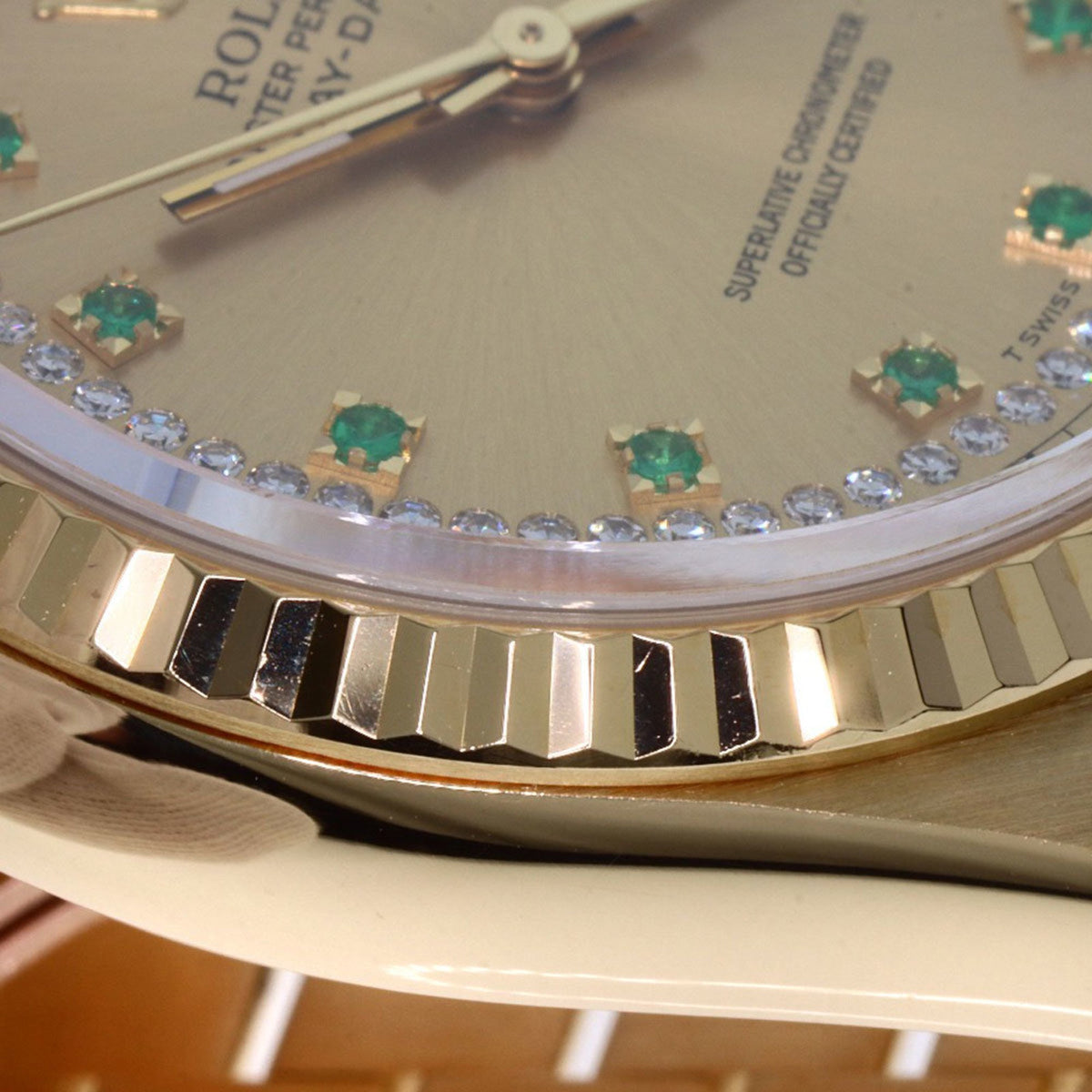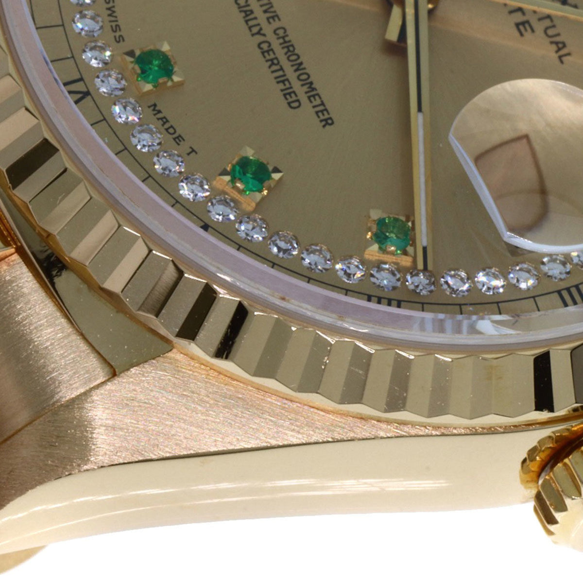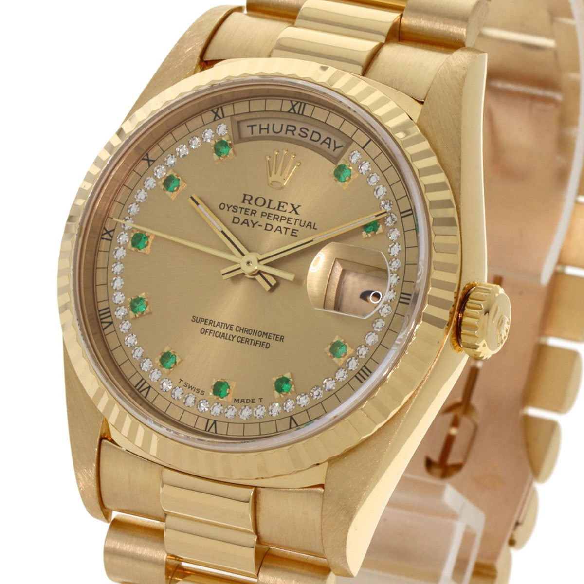 Pre-Owned Rolex 18238LE Day-Date Emerald and Diamond Watch in 18K Yellow Gold (18KYG) Men's