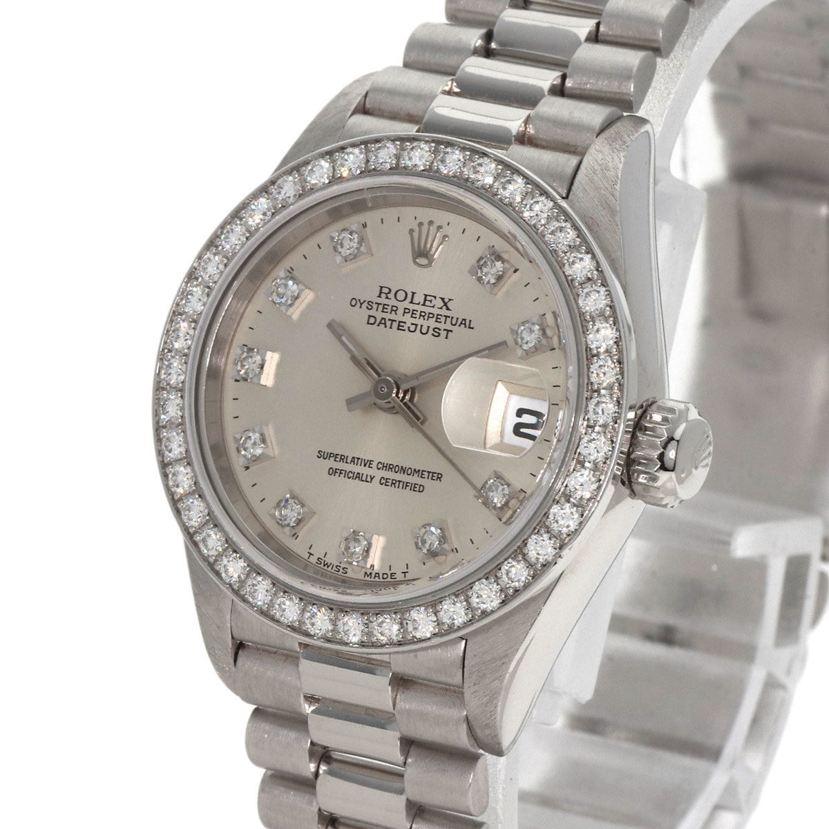 Gebrauchte Rolex 69136G Datejust 10P Lünette Diamant Uhr Platin PT Damen ROLEX