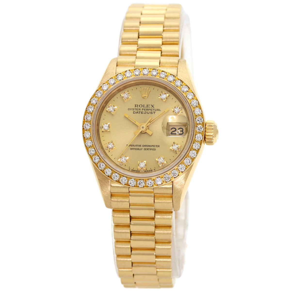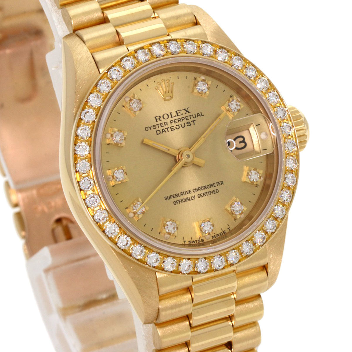 Gebrauchte Rolex 69138G Datejust 10P Lünette Diamant Uhr K18 Gelbgold K18YG Damen ROLEX