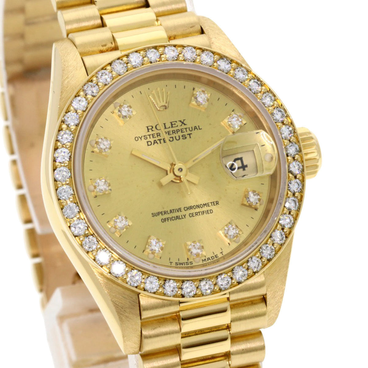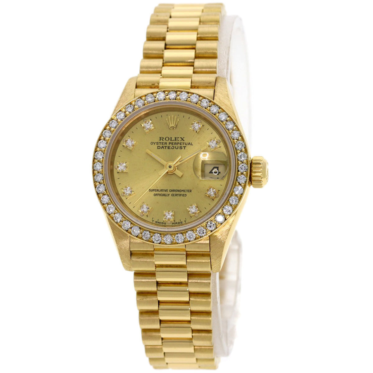 Pre-Owned Rolex 69138G Datejust 10P Bezel Diamond Watch K18 Yellow Gold K18YG Ladies ROLEX