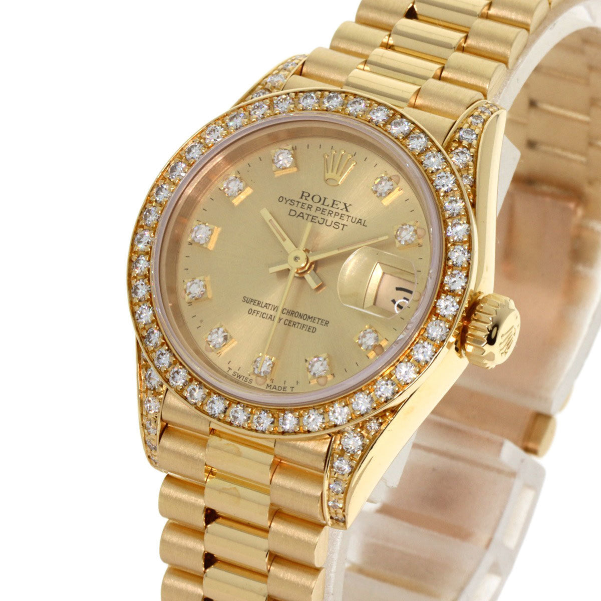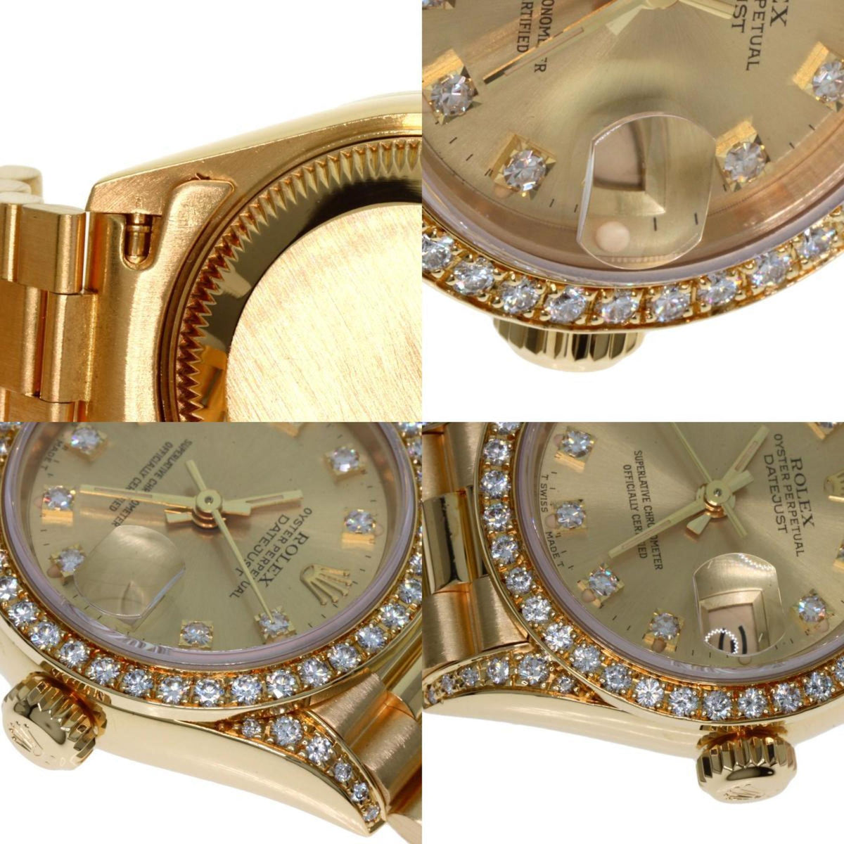Gebrauchte Rolex 69158G Datejust 10P Lünette Diamant Uhr K18 Gelbgold K18YG Damen ROLEX