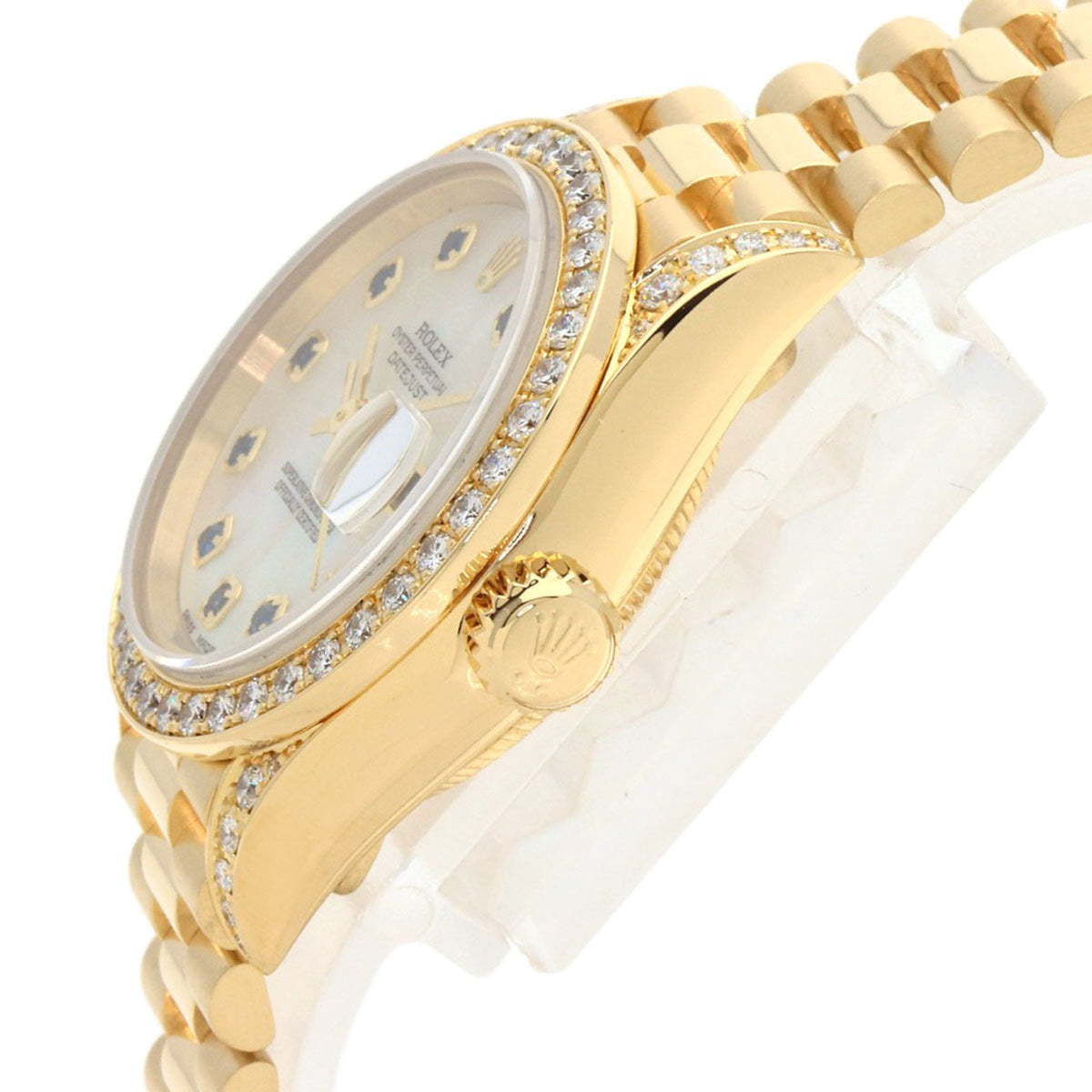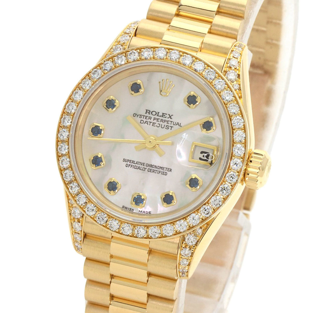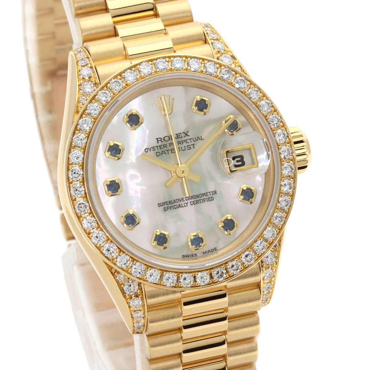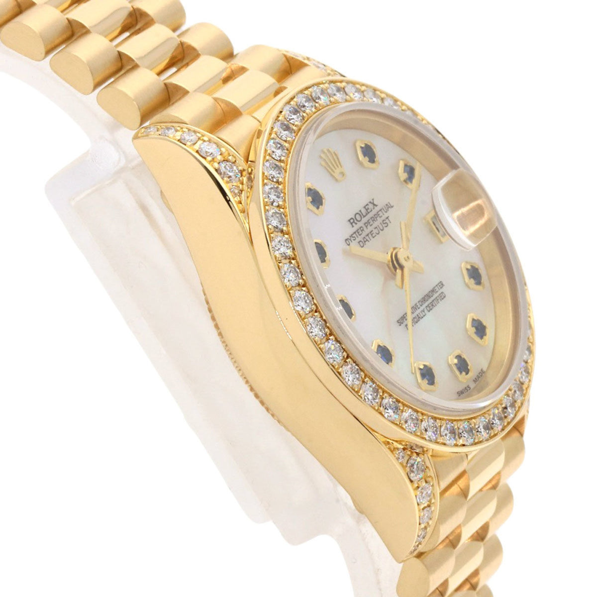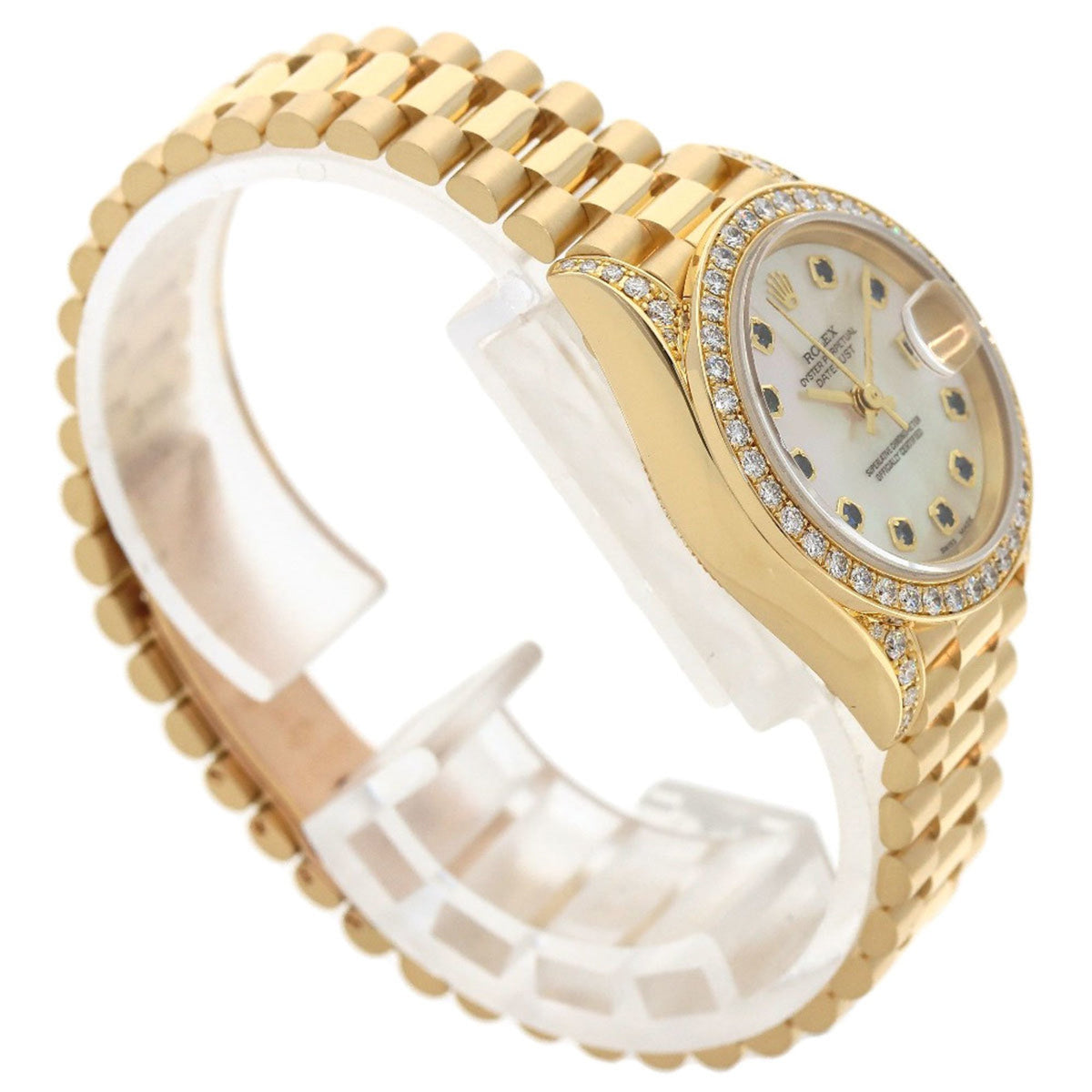 Pre-Owned Rolex 69158NGS Datejust 10P Sapphire Watch in 18K Yellow Gold with Diamonds, Women's