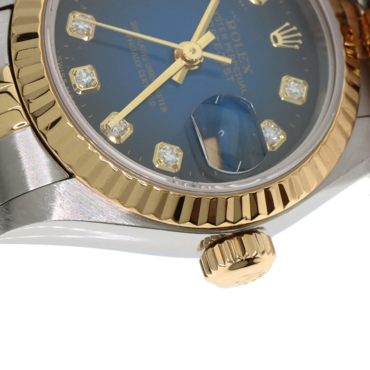 Pre-Owned Rolex 69173G Datejust 10P Diamond Blue Gradient Watch in Stainless Steel SSx18KYG (18KYG) for Women